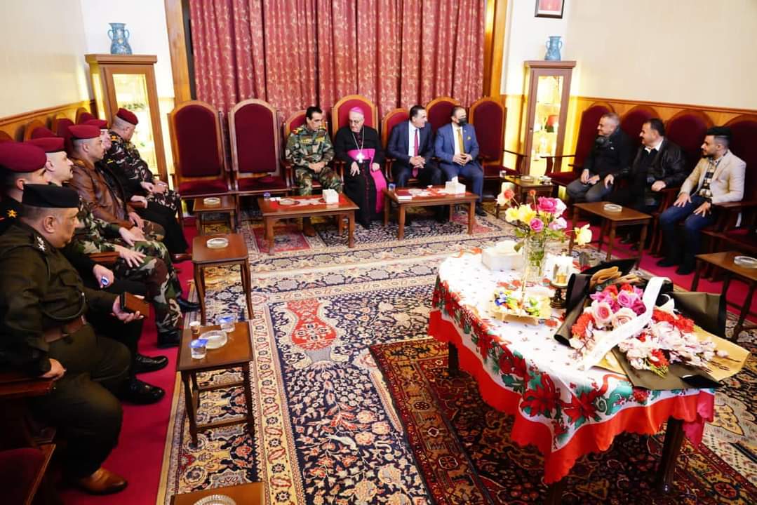 الجبوري .. يهنىء المسيحيين بأعياد الميلاد المجيد ..ويزور كاتدرائية الكلدان في كركوك . هنأ السيد محافظ كركوك راكان سعيد الجبوري ،المسيحيين في المحافظة بأعياد الميلاد المجيد ورأس السنة الجديدة . جاء ذلك خلال زيارته كاتدرائية الكلدان في كركوك واللقاء بالمطران الدكتور يوسف توما رئيس اساقفة كركوك والسليمانية للكلدان بحضور السيد عماد متي سعيد . وقدم سيادته اعتزازا بالمسيحيين ومكانتهم ودورهم الوطني والانساني ومكانتهم في كركوك باقة ورد تجسد السلام والتعايش والازدهار والتعايش بين جميع مكوناتها في محافظة كركوك . مؤكدا ان كركوك تفتخر بدور ووجود ومكانة المسيحيين في العراق لما لهم من اثر في اعلاء قيم التسامح والاستقرار والتعاون والمواطنة الكريمة . وقال: ان الكنيسة في كركوك كانت وستبقى صوت للسلام والتعايش وكان لها دور في رعاية الطلبة النازحين في سهل نينوى ومدن عراقية اخرى وسندا لادارة كركوك وقواتنا الامنية البطلة . وثمن الجبوري ، دور وجهود القوات الامنية البطلة ..موجها شكره للسادة علماء ورجال الدين من المسلمين والمسيحيين وسعيهم لتعزيز التأخي والتعايش في كركوك لتبقى جوهرة الوطن ورمز التعايش في العراق. واشاد المطران يوسف توما بخطاب الاعتدال وشجاعة ونهج السيد محافظ كركوك في الاعمار ودعم الاستقرار الامني والتعايش بين جميع مكونات كركوك وتواصله ودعمه للجميع .