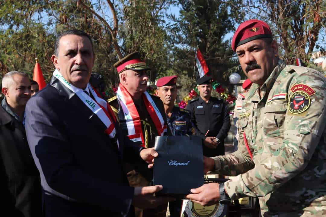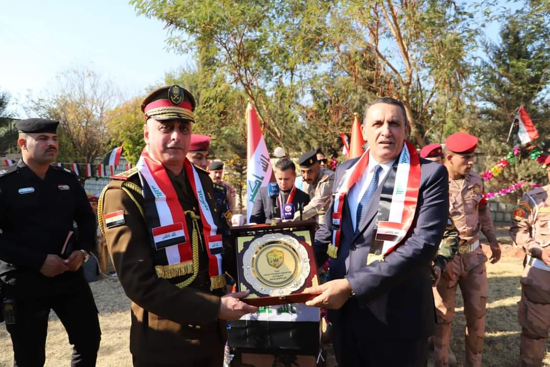 قيادة المقر المتقدم للعمليات المشتركة في محافظة كركوك تحتفي بعيد الجيش والشرطة العراقية . عرس وطني في كركوك ،وتكريم الضباط والمراتب المتميزون . الجبوري والفريجي ..يشيدون بدور الاعلام الوطني في دعم القوات الامنية البطلة وادارة كركوك . نظمت قيادة المقر المتقدم للعمليات المشتركة في محافظة كركوك ،احتفالية في مقرها الرئيس احتفاءً بالذكرى (101) لتأسيس الجيش العراقي الباسل ،والذكرى (100) لتأسيس الشرطة العراقية ،حضرها السيد محافظ كركوك راكان سعيد الجبوري رئيس اللجنة الامنية العليا ،والفريق الركن علي الفريجي قائد المقر المتقدم ،وقادة الفرق الثامنة والخامسة والثالثة والالية وقائد المقر المسيطر في الطوز ونائب قائد المقر ومعاون القائد للداخلية ومعاون القائد لشؤون الحشد الشعبي ورئيس هيئة المستشارين وقائد شرطة كركوك والسادة رئيس جامعة كركوك ومدير عام الصحة ومدير عام غاز الشمال وقائمقام مدينة كركوك ومدير التخطيط العام وعدد من السادة مدراء الدوائر الخدمية وعدد من مدراء الدوائر الاستخبارية والامنية من والدفاع المدني والسفر والجنسية والمرور والضباط والمقاتلين الابطال . وعبر السيد المحافظ عن سعادته للاحتفاء بهذه المناسبة الوطنية ..مؤكدا ان جيش العراق وقواتنا الامنية هي رمز الفداء والتضحية وعنوان وحدة العراق وسيادته وكرامه شعبه . قائلا : لولا هذه الدماء الطاهرة والتضحيات لما تحقق النصر والاستقرار وحفظت كرامة شعبنا ومواطني كركوك بجميع مكوناتهم ..مشيدا بدور الجيش العراقي والشرطة الاتحادية والشرطة المحلية والحشد الشعبي وجميع التشكيلات الامنية والاستخبارية ..مثمنا دور الاعلام في كركوك وجهادهم وتضحياتهم باسناد القوات الامنية وادارة كركوك ودوائرها الخدمية . وعبر عن اشادته بدور قائد المقر المتقدم وجميع القيادات الامنية ووعي وتعاون واسناد مواطني كركوك . وثمن جهود وتضحيات القوات الامنية من الجيش والشرطة الاتحادية والشرطة المحلية والحشد الشعبي والاجهزة الاستخبارية وحرس الاقليم . وقال الفريق الركن علي الفريجي : ان جيشنا عزنا وفخرنا ٠٠ جيش العراق بكل قومياته ومكوناته، جيش البطولات والصولات، جيش الشهداء الذين قدّموا حياتهم في سبيل عزة العراق، جيش الجرحى الأبطال ٠٠ جيش أباؤنا وأجدادنا، وبالتأكيد هو جيش أولادنا ٠٠ جيش العراق فوق الميول والاتجاهات ٠٠٠ مرحى لأبطال قواتنا المسلحة بعيدهم الأغر، ورحم الله شهدائنا الأبرار وأسكنهم فسيح جناته، وشافى جرحانا الأبطال … أتقدم بالتهنئة لجميع أبطال قواتنا المسلحة قادة وآمرين وضباطاً ومراتب، بهذه المناسبة . واشاد الفريجي ،بدعم واسناد السيد محافظ كركوك رئيس اللجنة الامنية العليا ودوائر المحافظة ..مثمنا دور الاعلام الوطني ومساندة الاعلاميين والصحفيين للقوات الامنية . والقى معاون القائد لشؤون الحشد الشعبي السيد نبيل عسكر كلمة عبر فيها عن اعتزازه بالقوات الامنية ..مثمنا جهود الجيش والحشد الشعبي والشرطة الاتحادية وجميع القوات الامنية . وعبر عن اعتزازه بالجيش والشرطة والشرطة الاتحادية والحشد الشعبي وحرس الاقليم وتضحياتهم في دحر فلول الارهاب. كما القى قائد شرطة كركوك العميد كاوه غريب ،كلمة قدم التهاني لابطال الجيش العراقي والشرطة العراقية ..قائلا : ان تضحيات القوات الامنية صنعت الامن والاستقرار ونعمل لترسيخ فرض القانون وهيبة الدولة ..مثمنا دعم السيد المحافظ وقائد المقر المتقدم لجميع تشكيلات الشرطة بما يحقق امن واستقرار كركوك . وقدم الفريق الركن الفريجي درع القيادة للسيد محافظ كركوك تثمينا ودعما لجهوده في مساندة القوات الامنية البطلة . وقدمت خلال الاحتفالية وصلات شعرية وهدايا للمقاتلين والضباط والمراتب المتميزة بالعطاء من جميع صنوف قواتنا الامنية البطلة .