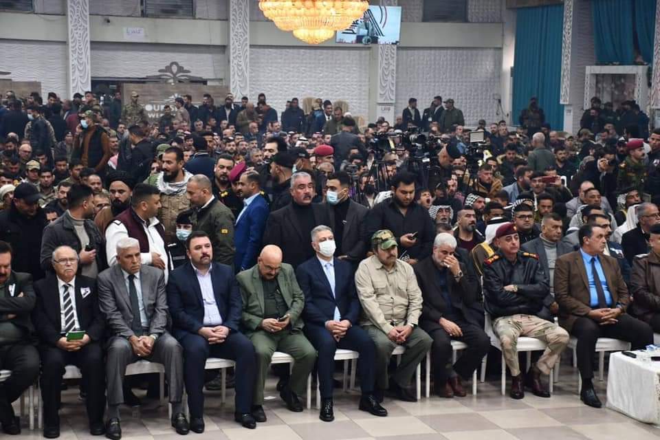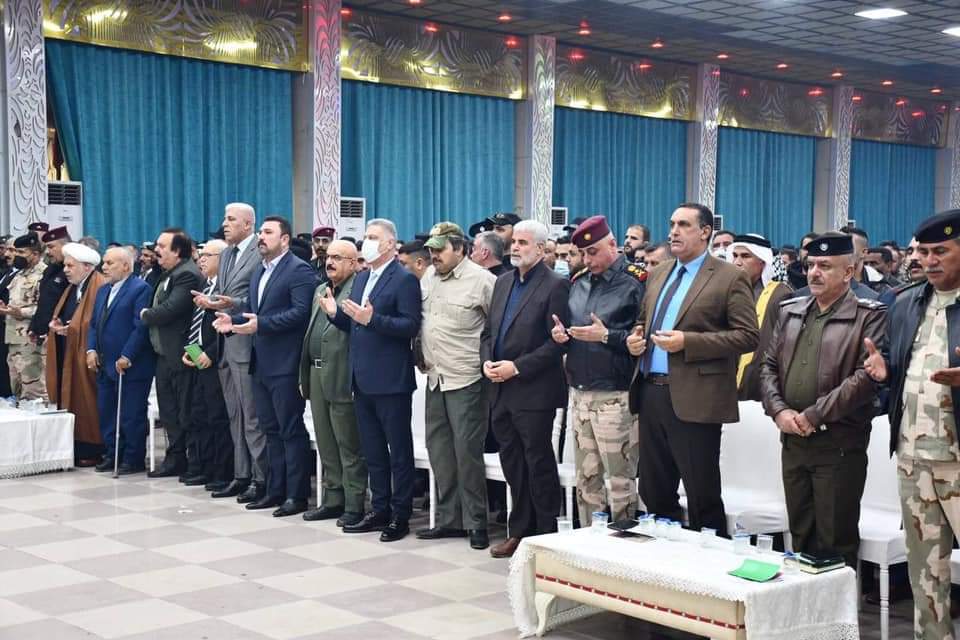 الجبوري .. يحضر الحفل التأبيني لشهداء قادة النصر ..ويؤكد في كلمته ،لولا تضحيات الشهداء الابطال لما تحقق النصر والاستقرار والاعمار . حضر السيد محافظ كركوك راكان سعيد الجبوري ،الحفل التأبيني لشهداء قادة النصر في ذكراهم الثانية تحت شعار (رحلت اجسادهم وظلت ارواحهم في ضمائرنا ). بمشاركة قائد المقر المتقدم للعمليات المشتركة الفريق ركن علي الفريجي ،والسادة اعضاء مجلس النواب ارشد الصالحي وغريب عسكر ، وقائد محور الشمال للحشد الشعبي ابو رضا النجار ومعاونه ابو مصطفى الامامي ومعاون قائد العمليات للحشد الشعبـــي ابو ثائر البشيري وقادة الفرقة الثامنة للجيش العراقي وقائد الفرقة الخامسة وقائد شرطة كركوك وممثل الجمهورية الاسلامية اقبال پور وقيادات امنية واستخبارية وقادة بالحشد ووجهاء وشخصيات وممثلي الاحزاب وقائمقام مدينة كركوك . واكد الجبوري ، اننا نعتز بالشهداء ونستذكر تضحياتهم ،ولولا تضحيات ودماء قادة النصر وتضحيات قواتنا الامنية البطلة وجميع التشكيلات الامنية ومواطني كركوك لما تحقق الاستقرار والاعمار ..مؤكدا ان دعم القوات الامنية ومساندتها واجب وطني وعامل مهم لترسيخ الاستقرار . واشاد الجبوري بجهود قائد المقر المتقدم والقيادات الامنية والحشد الشعبي والشرطة الاتحادية والشرطة المحلية ..مثمنا دور علماء ورجال الدين الافاضل في تعزيز الاستقرار والحفاظ على التعايش بين جميع مكونات كركوك .