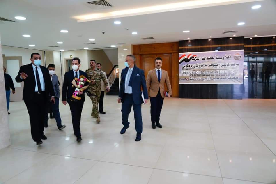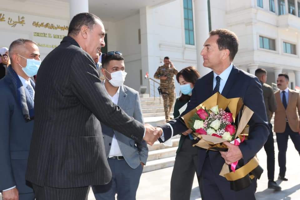 السفير الفرنسي في العراق يزور محافظة كركوك . الجبوري ..يستقبل سعادة سفير الجمهورية الفرنسية . زار سعادة السفير الفرنسي في العراق السيد ايريك شوفاليه محافظة كركوك ،وكان في استقباله بمبنى المحافظة السيد راكان سعيد الجبوري محافظ كركوك والسادة المعاون الفني المهندس علي حمادي والمعاون الاداري المهندس رائد نشأت ورئيس هيئة المستشارين الدكتور عماد ادهام والسادة المستشارون . وقدم السيد محافظ كركوك عرضا لجهود الادارة بالمحافظة في تحقيق العدالة وتامين الخدمات وتنفيذ المشاريع ودعم جهود اعادة الاستقرار واعمار المناطق المحررة واعادة النازحين اليها ، وايضا مساندة ودعم جهود القوات الامنية في محاربة الارهاب وتحقيق الاستقرار ..قائلا : ان المحافظة تشهد استقرار امني ومجتمعي وانسجام بمشاركة جميع مكوناتها لكركوك هويتها الوطنية وهي تمتاز بالتنوع الايجابي ..داعيا الشركات الفرنسية للتوجه والعمل في محافظة كركوك وفق دعم واسناد الحكومة الاتحادية . وقال : ان لفرنسا اهمية كبيرة وهي لها دور في دعم جهود الاستقرار واعمار المناطق المحررة ..مؤكدا اهمية دعم جامعة كركوك عبر البعثات والزمالات والتعاون الثقافي والعلمي ومساندة المدارس التي تعتمد الدراسة الفرنسية في كركوك . وقال : ان كركوك تدعم وتساند جهود استخدام الطاقة النظيفة ومهم جدا مساندتنا في طموحنا في استخدام الطاقة الشمسية النظيفة بالتعاون مع الحكومة الاتحادية والشركات الفرنسية . وقال : ان كركوك لديها فرص في تطوير الاستثمارات في مجال الطاقة ولفرنسا دور كبير وامكانيات لدعم العراق وكركوك بشكل خاص ..مؤكدا اهمية مساهمة شركة توتال بالتعاون مع وزارة النفط في تطوير قطاع النفط والغاز في كركوك . ودعا فرنسا الى مساندة المحافظة التي لها اهمية تاريخية في دعم مبادرات اعمار المواقع التاريخية والاثارية وتدعيم المشتركات واقامة الورش والدورات التأهيلية . وقال : ان فرنسا تدعم جهود العراق في محاربة الارهاب واهمية القضاء على فلوله بالتعاون والمساندة لجهود الحكومة العراقية ووزارة الدفاع وقيادة العمليات المشتركة . واشار بالقول ان كركوك كانت من المدن الاولى التي اغلقت سبع مخيمات نازحين ونجحت في اعادة اغلب النواحي ومستمرة في جهود اعمار المناطق المحررة الا ان هنالك تحديات تواجه اعادة سكان القرى المهدمة التي يجري ايصال الخدمات لمناطقهم المدمرة . واكد سعادة السفير الفرنسي ،ان زيارته هي الاولى للمحافظة ولولا الامن والاستقرار فيها لما قمنا بزيارتها الى جانب حث سفراء الاتحاد الاوربي لزيارة كركوك . وقال : سنعمل على دراسة فرص العمل والتعاون مع كركوك بما يخدم جهود الاعمار وحث شركات الطاقة ومنها توتال للتعاون مع وزارة النفط والعمل في كركوك وشركات فرنسية ..مؤكدا اننا ندعم تطوير واقع التعليم وزيارتنا اليوم للمحافظة وجامعة كركوك لتعزيز التواصل والتعاون ودعم جهود التبادل والتنسيق العلمي والثقافي وايضا مساندة المدارس التي تدرس الفرنسية في كركوك . واكد ان كركوك فيها سلم وهنالك جهود لدعم المحافظة . واكد المعاون على اهمية استمرار جهود دعم العراق وكركوك في برامج الاستقرار واعمار المناطق المحررة ..مؤكدا ان مشاريع المحافظة وزعت وفق الكثافة السكانية ..داعيا لمساهمة الشركات الفرنسية في مشروع تدوير النفايات وانتاج الطاقة . واكد المعاون الاداري على اهمية التعاون الثقافي والاقتصادي والاجتماعي .