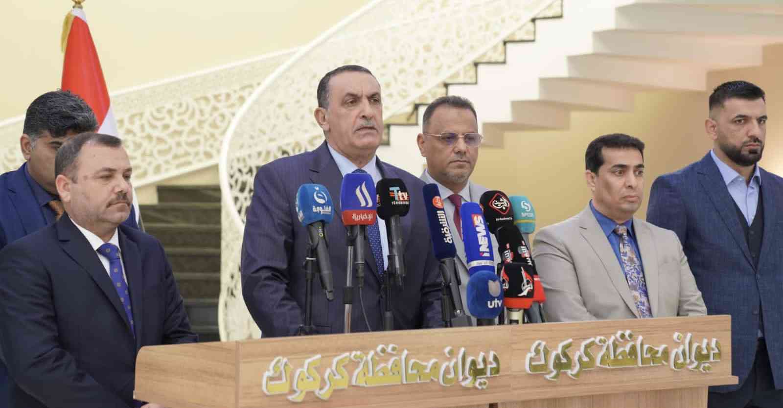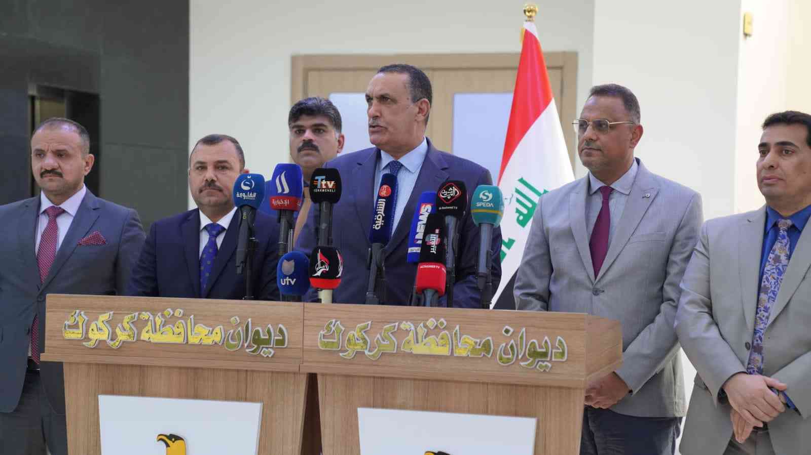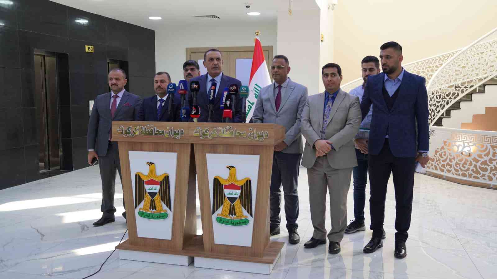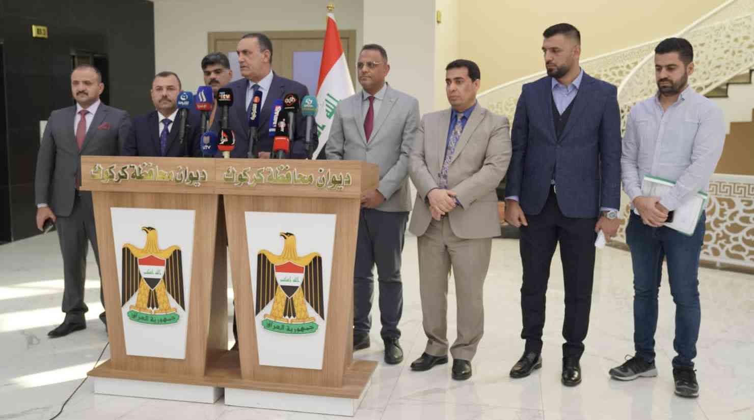 السيد محافظ كركوك راكان سعيد الجبوري ووفد صندوق اعادة اعمار المناطق المتضررة من العمليات الارهابية ، يعقدون مؤتمراً صحفياً في مبنى المحافظة ، لشرح خطط ومشاريع الصندوق بالمناطق المحررة ،واهمية استمرار الدعم لها واعادة اعمار القرى المهدمة .