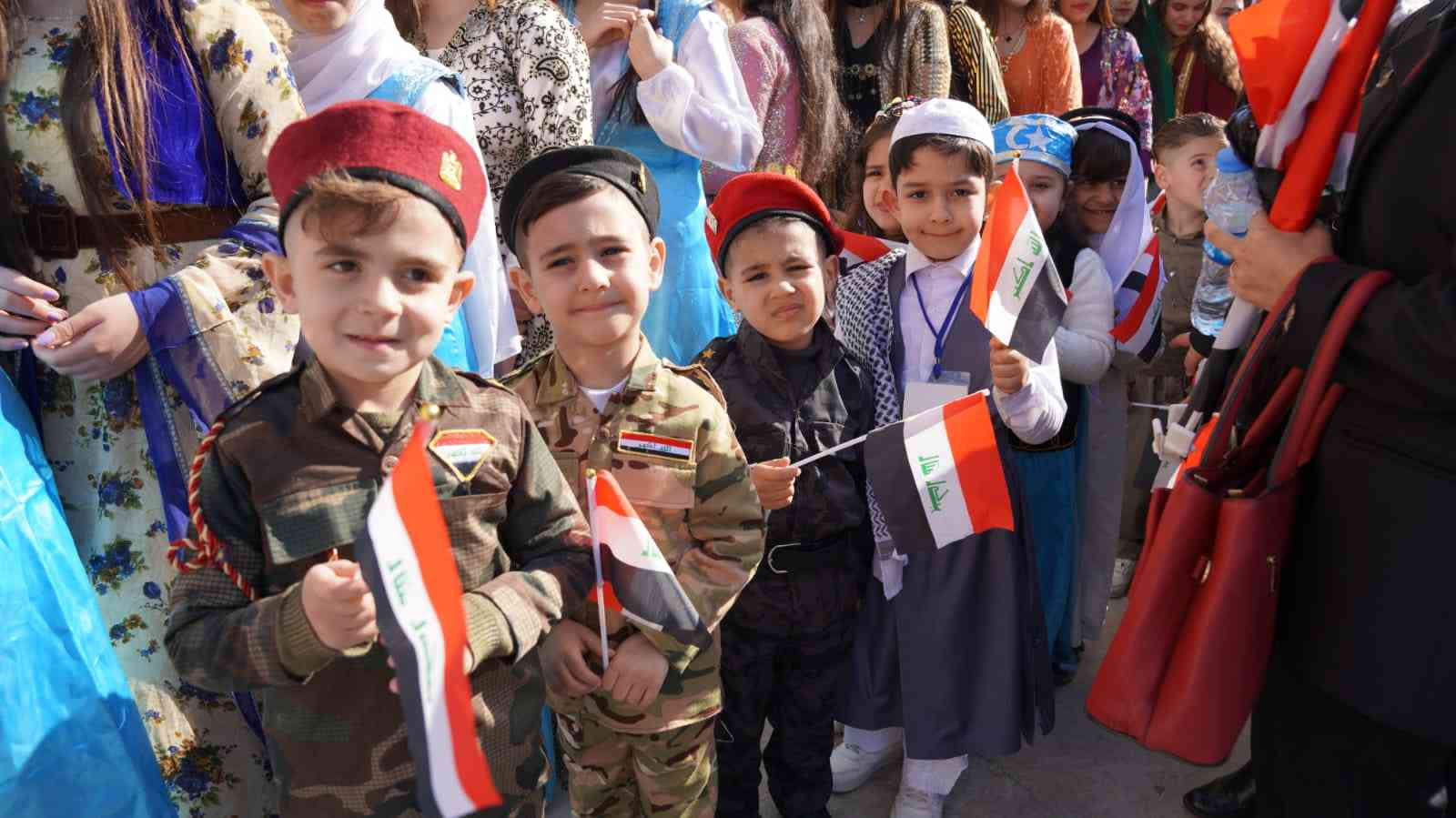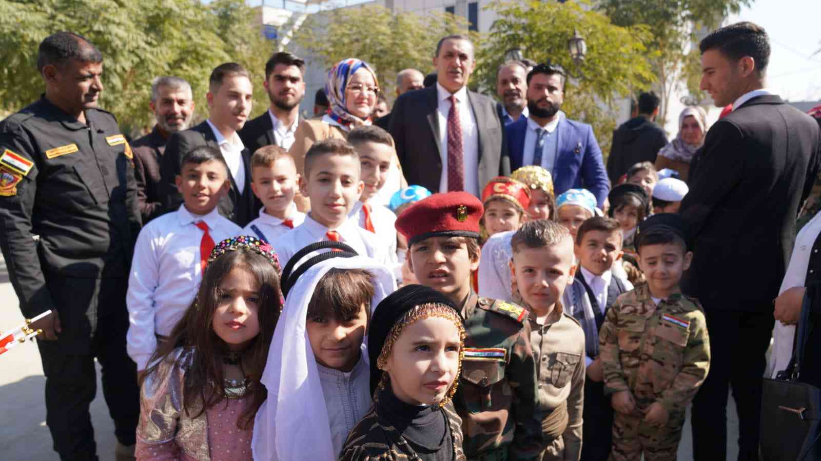 وتم عزف السلام الجمهوري وقراءة سورة الفاتحة ترحماً على شهداء العراق وابطال قواتنا الامنية بجميع صنوفها .
