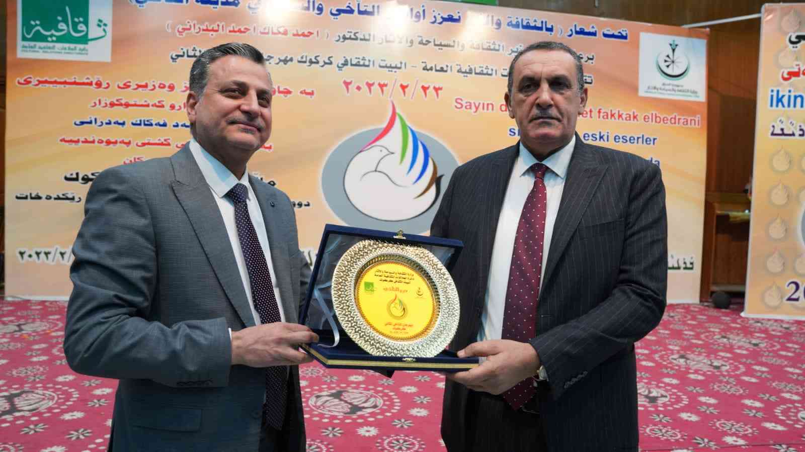 وقدمت وزارة الثقافة درعها للسيد محافظ كركوك وعدد من نتاجها الثقافي تثميناً لجهده ودوره ودعمه للثقافة والادباء والفنانين والصحفيين ومساندته اسس التعايش والسلام .