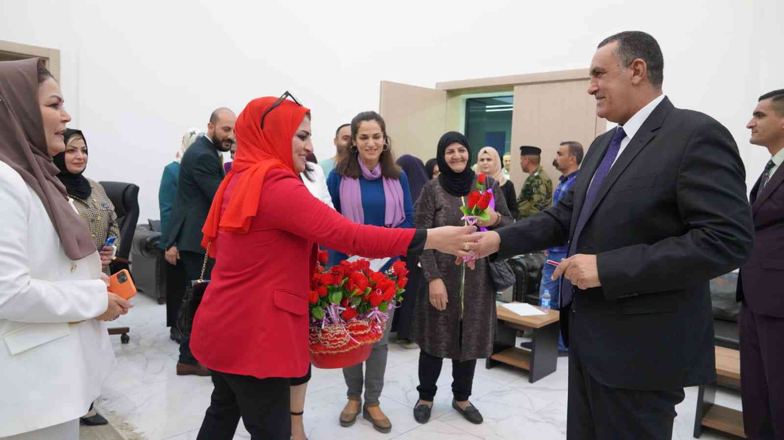 مثمناً دور سيدات كركوك وجهودهن بالمنظمات ودورهن في  دعم النساء معيلات الاسر وفتح مجالات العمل لهن و انخراطهن في سوق العمل والوظيفة  والسلك الامني وتسهيل التقديم للقروض لريادة الاعمال .