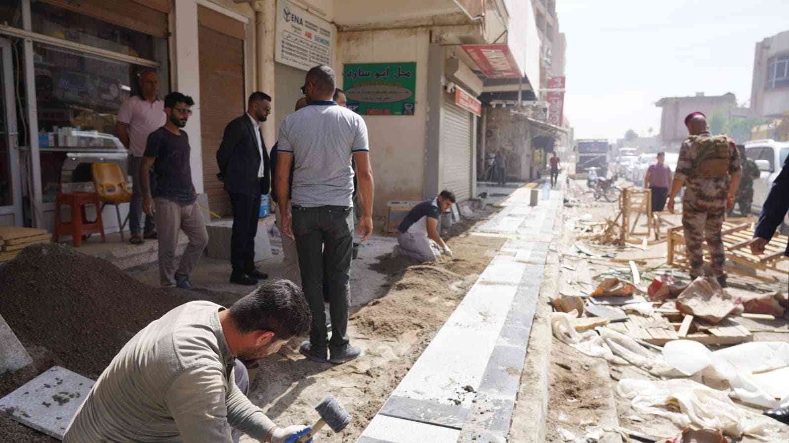 يتابع اعمال التأهيل والتطوير في شارع المجيدية والاوقاف بمدينة كركوك .