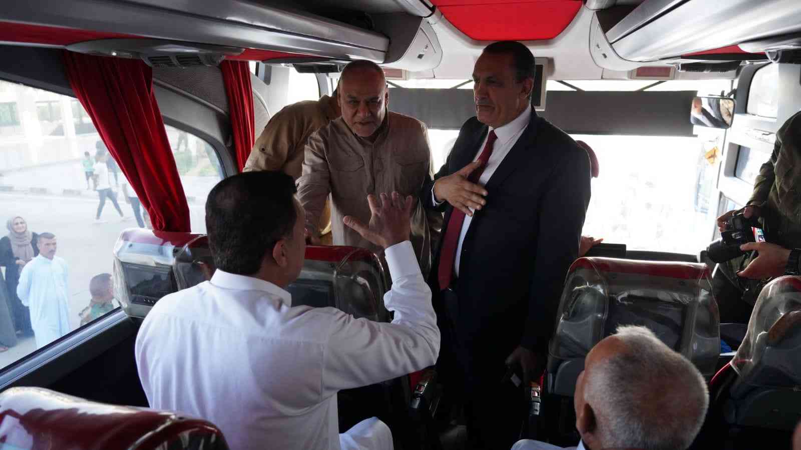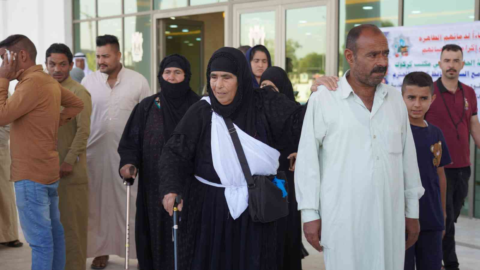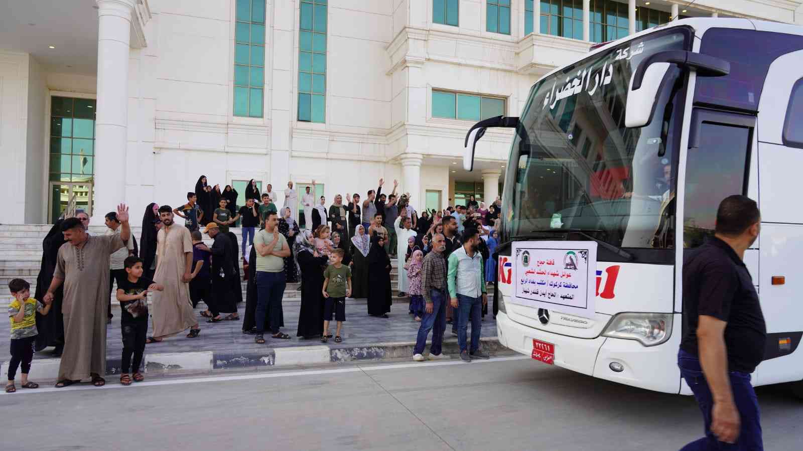 محافظ كركوك ..  يقف لتوديع عوائل الشهداء لتأدية مناسك الحج ،انطلاقاً من مبنى المحافظة .