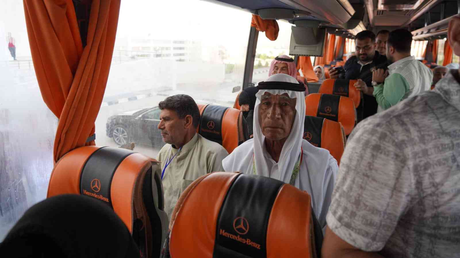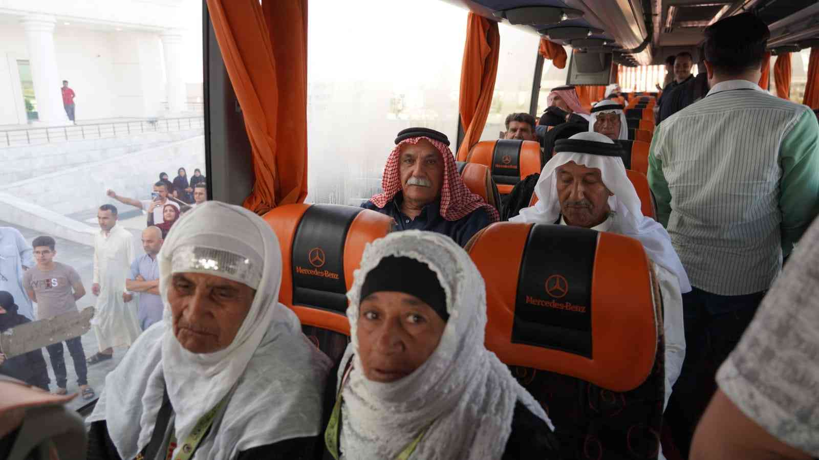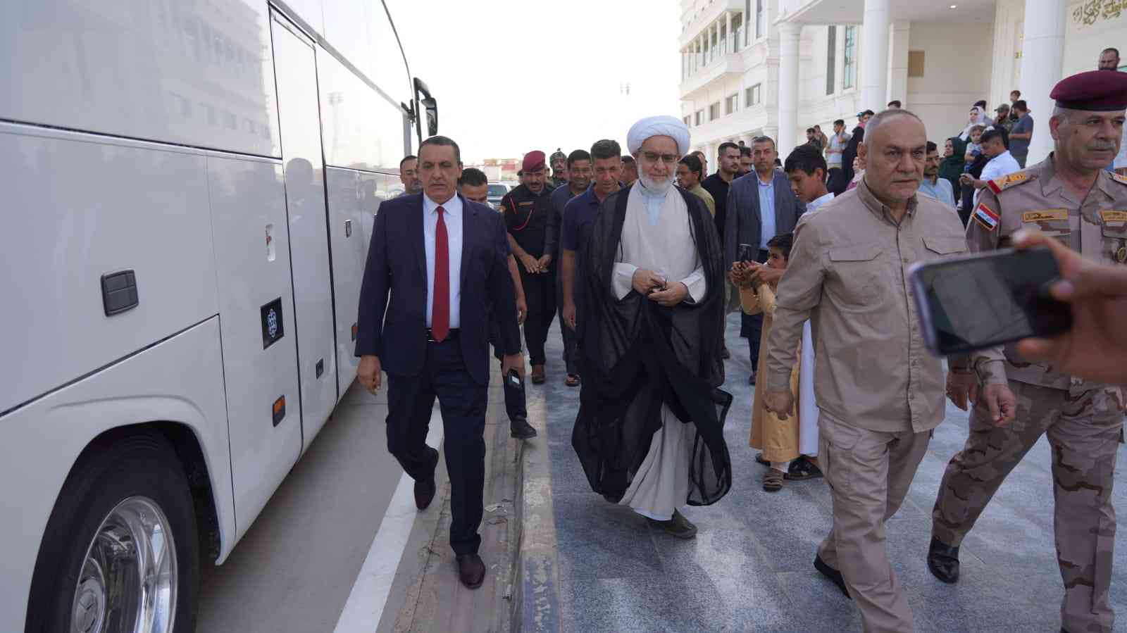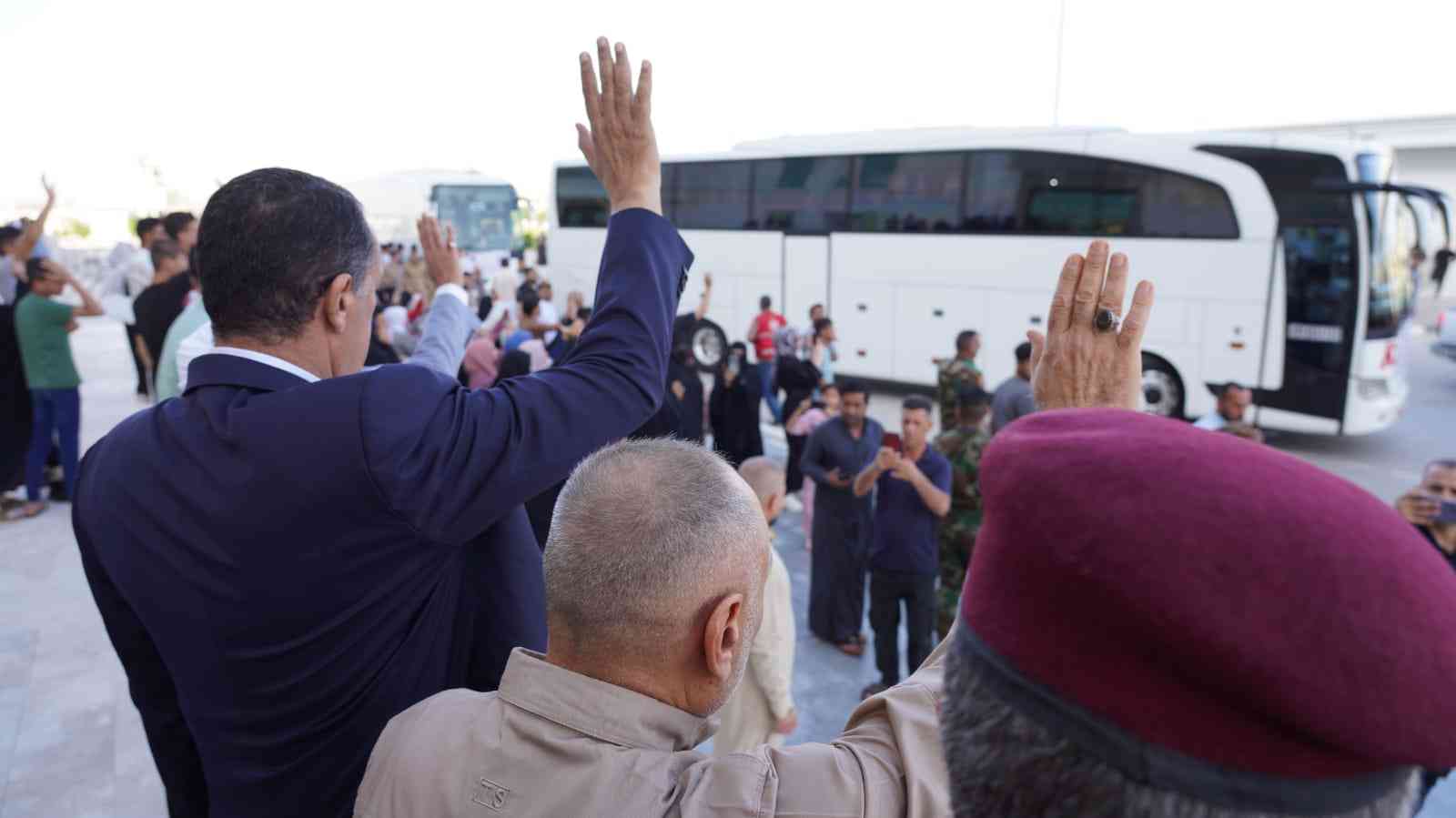 محافظ كركوك ..  يقف لتوديع عوائل الشهداء لتأدية مناسك الحج ،انطلاقاً من مبنى المحافظة .