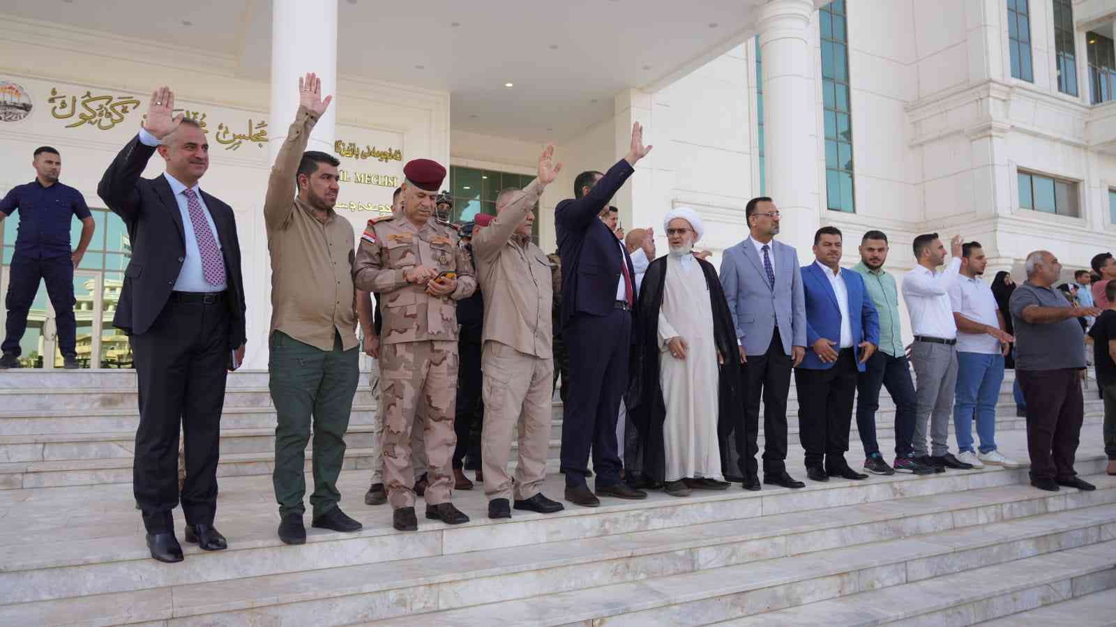انه لشرف عظيم ان نقف بعد ساعات الفجر والصباح المبارك من مبنى المحافظة ونحن نودع هذه الوجوه الكريمة لعوائل المضحين واصحاب المواقف والدماء الطاهرة ..مؤكداً ان العراق وكركوك بشكل خاص تفتخر بالمضحين والشهداء .