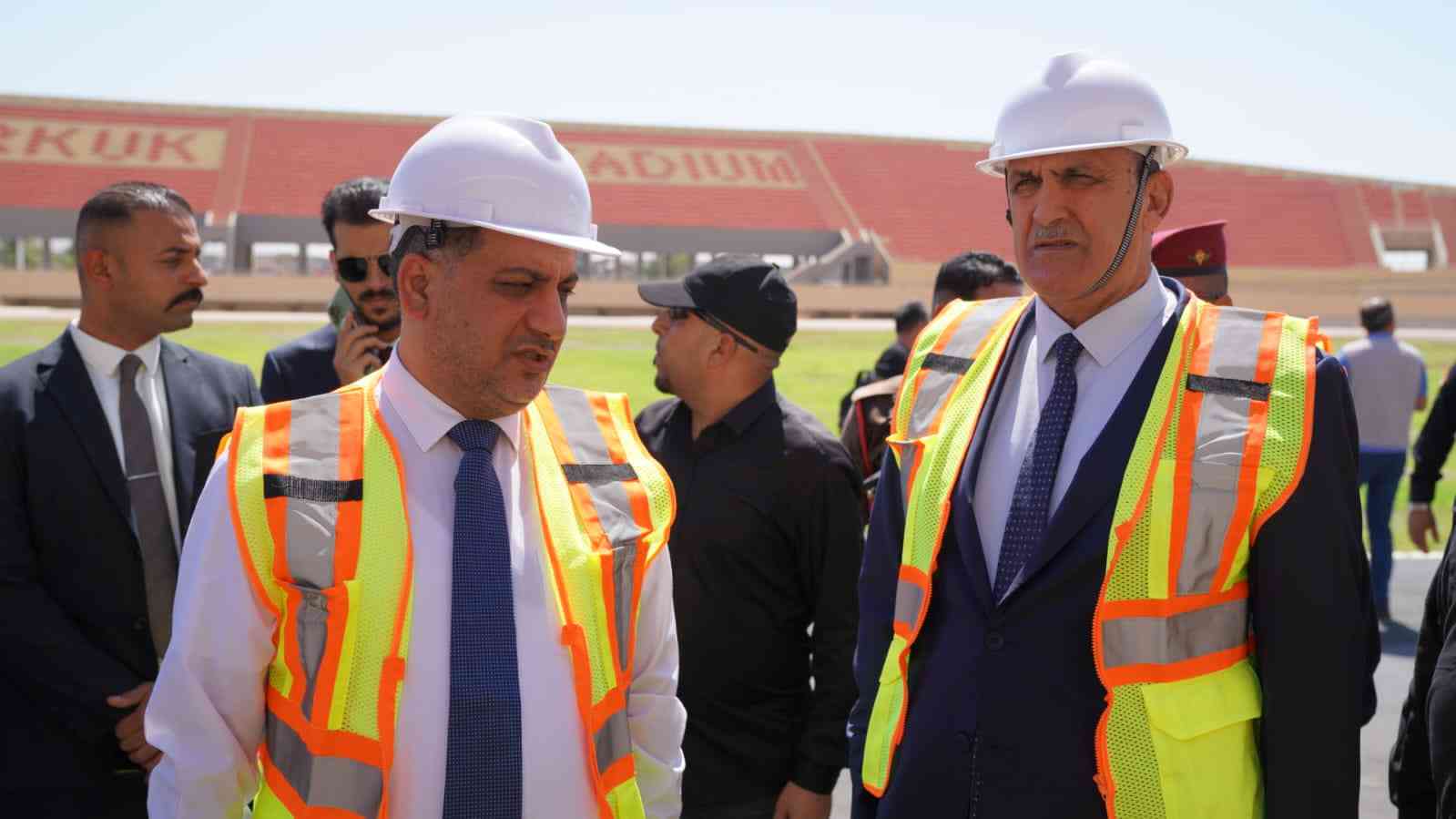 في حرارة الصيف .. وبزيارة ميدانية .. معالي وزير الشباب والرياضة السيد احمد المبرقع والسيد محافظ كركوك راكان سعيد الجبوري في زيارة ميدانية الى موقع الملعب الأولمبي في مدينة كركوك .