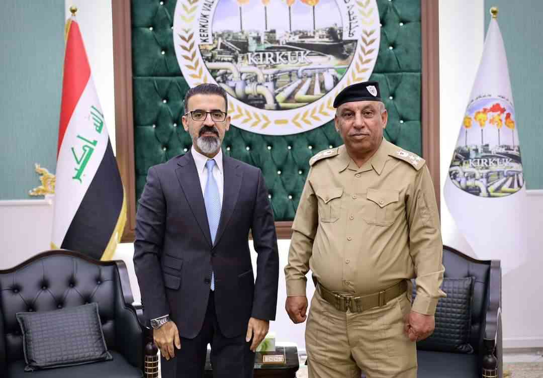 The Governor of Kirkuk, Ribwar Taha Ahmed Chairman of the Supreme Security Committee met with Brigadier General Badr Khalaf, Director of the Electricity Police, who extended his congratulations to His Excellency on the occasion of assuming his duties as the Governor of Kirkuk.