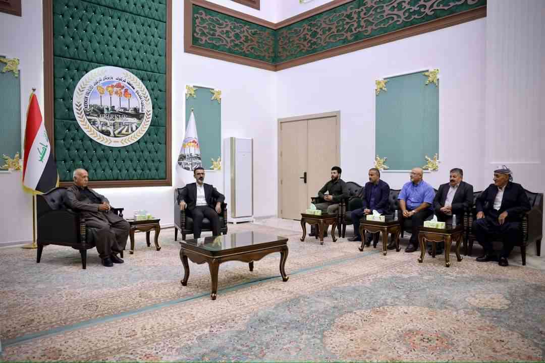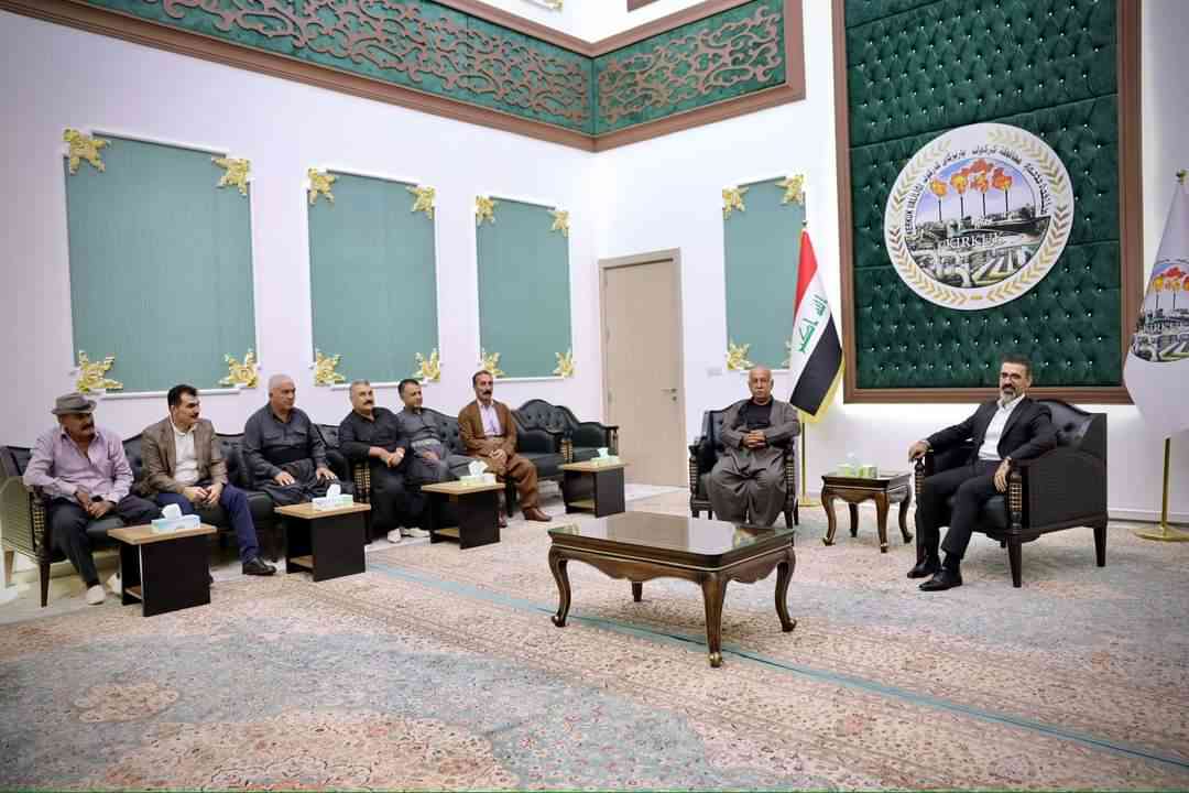 The Governor of Kirkuk, Ribwar Taha Mustafa, met with a delegation of veteran Peshmerga members who visited the governorate building to congratulate him on assuming his duties as the Governor of Kirkuk.