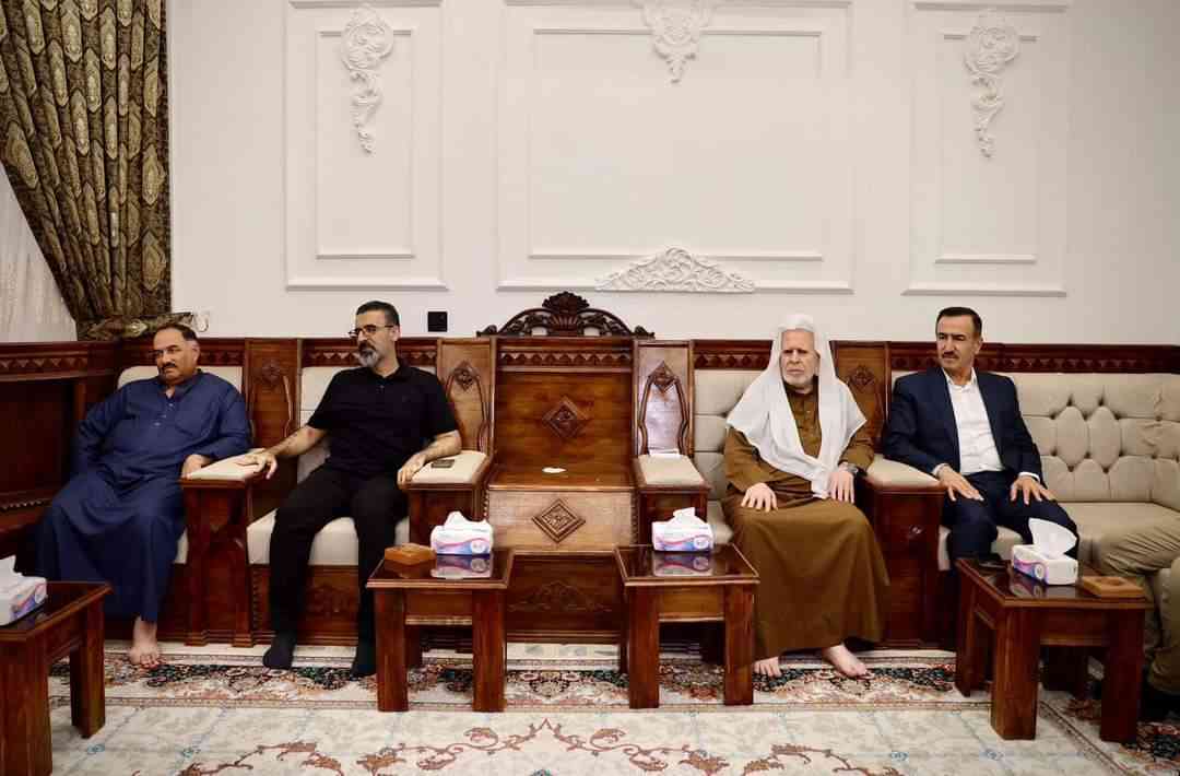 The Governor of Kirkuk, Mr. Ribwar Taha Mustafa, visited the guesthouse of the late Sheikh Nadhim Al-Asi. During his visit, he met with several of the sheikh's family members, including Sheikh Dhaher Anwar Al-Asi, a member of the Kirkuk Provincial Council, and Safaa Mujrin, the Deputy Governor for Social Affairs and Organizations, along with several directors of service departments.