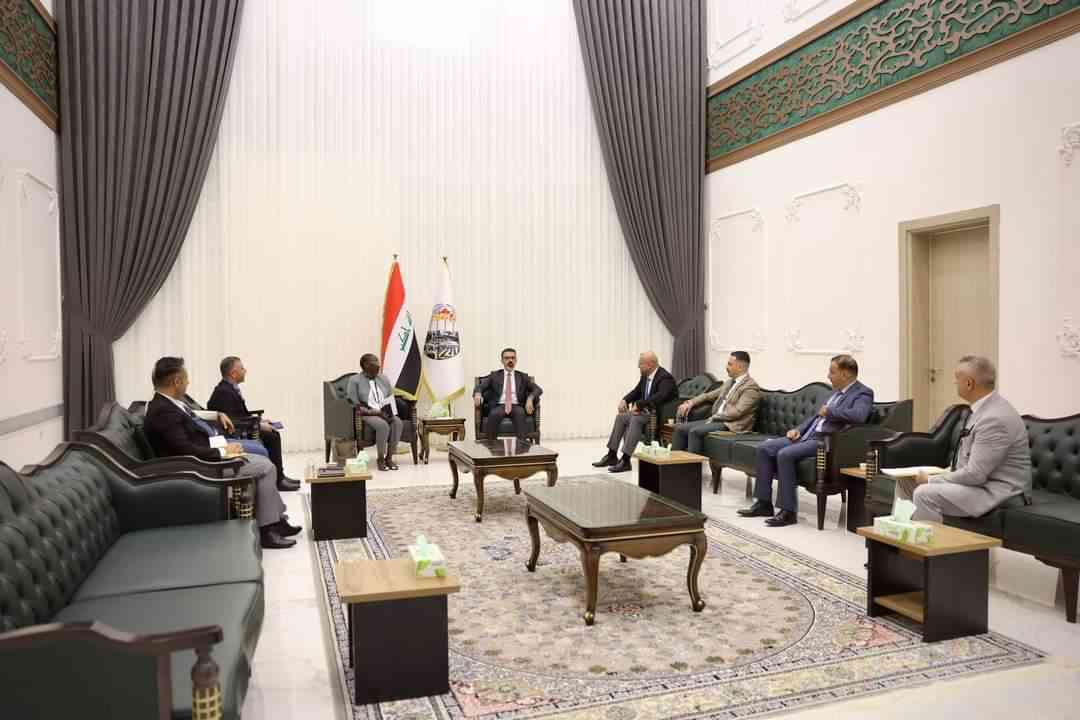 Meeting a delegation from the United Nations Development Program (UNDP) headed by Ms. Nadi Matti, Head of the Stabilization Program, with Mr. Deputy Governor for Social Affairs and Organizations Safaa Majran, Ali Al-Najjar, Director of the Housing Project, Wissam Al-Harmazi, Coordinator of the Northern Region, and Walid Al-Tayyar, Coordinator of Kirkuk.