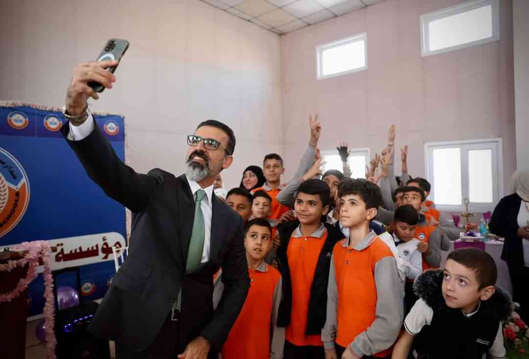 Öğrenciler ve çocuklarla birlikte, Kerkük Işık Eğitim kurumu’nun kuruluş yıldönümü kutlamalarına katıldı.