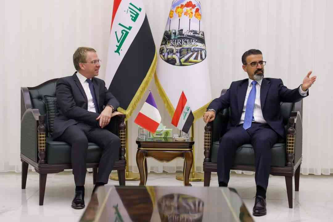 During the meeting, which was held at the governorate's office in the presence of the first deputy governor and members of the Kirkuk Provincial Council, they discussed joint cooperation between Iraq and France and its positive impact on Kirkuk.