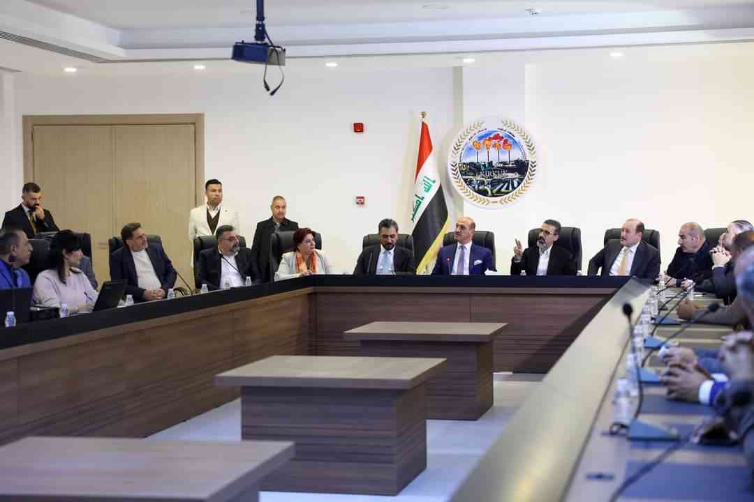 Kirkuk Governor Mr. Rebwar Taha Mustafa, President of the Iraqi Football Association Adnan Darjal, Council Chairman Eng. Mohammed Ibrahim Al-Hafez and a number of Council members discuss the dream project (Talent Center) for the first time in Kirkuk's history, and promising sports projects in Kirkuk. In a quick meeting attended by the technical assistant, the head of the Olympic Committee and a number of officials from sports and youth institutions, clubs and specialized activities.