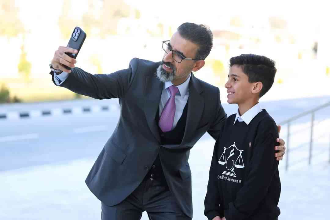 يقف مع عدد من خريجي كلية القانون بجامعة كركوك وعوائلهم بواجهة مبنى المحافظة .