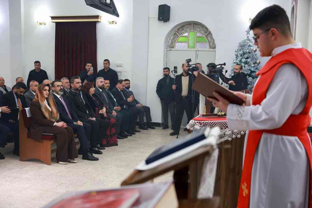 Kerkük İl Meclisi Başkanı Mühendis Muhammed El-Hafız ve Kerkük İl Meclisi'nin bazı üyeleri ve şahsiyetler Noel bayramı münasebetiyle Kerkük'teki eş-şarkıyye Kilisesi'nde