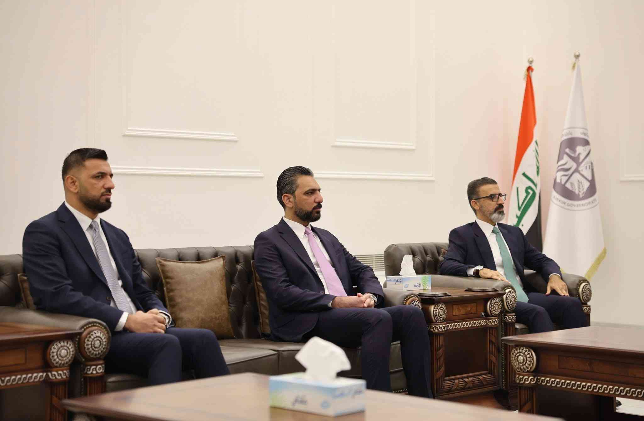 Valilik binasındaki resmi makamında bir araya geldi. Görüşmeye Parlamento meclis üyesi Şeyh Muheymen el-Hamdani, İl Meclis Başkanı Mühendis Muhammed İbrahim el-Hafız ve teknik yardımcı Mühendis Kasım İbrahim el-Hafız da katıldı.