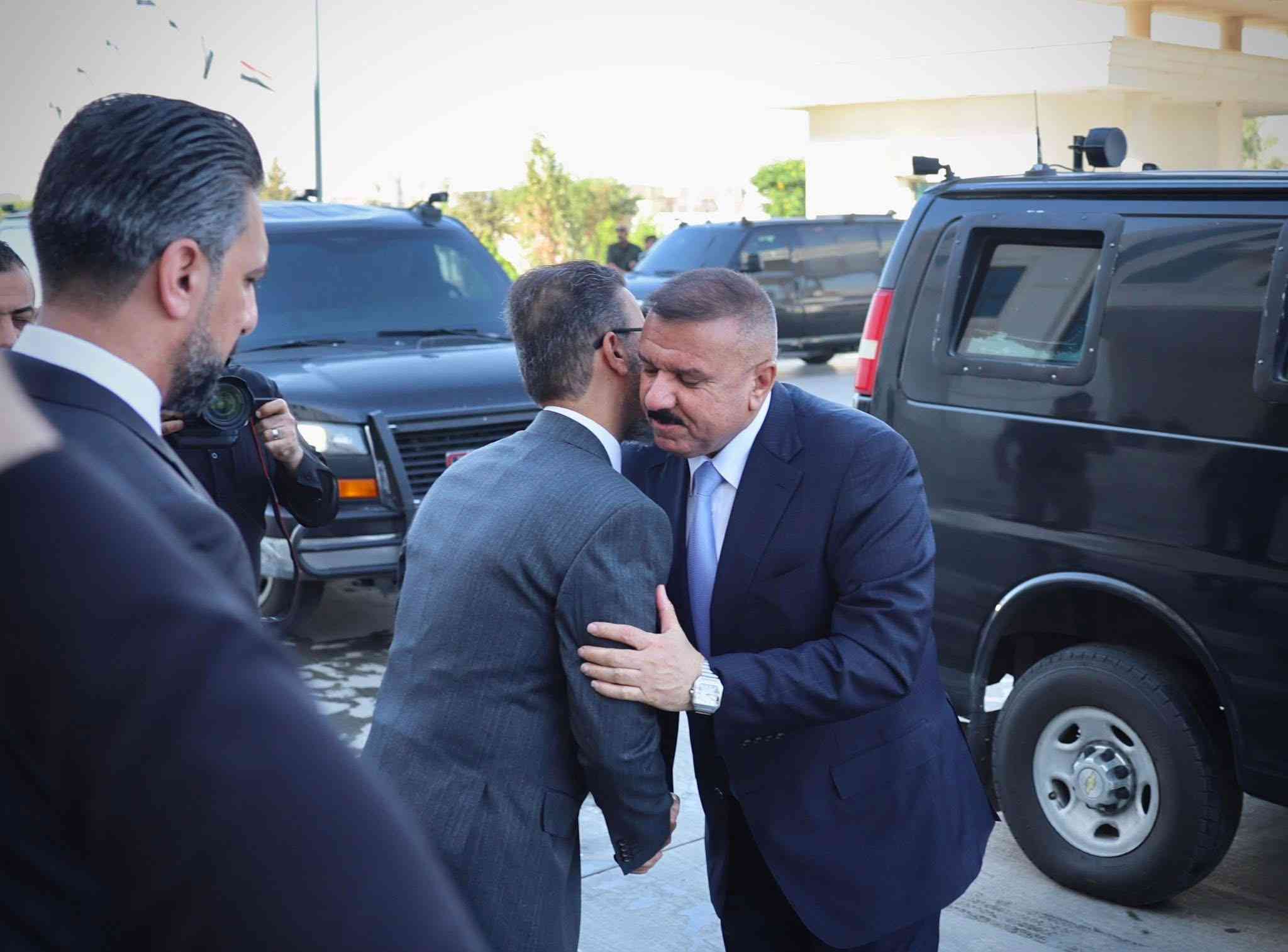 His Excellency the Minister of Interior, Mr. Abdul Amir Al-Shammari, arrived at the Kirkuk Governorate Building, where he was received by the Governor of Kirkuk, Mr. Rebwar Taha, Chairman of the Higher Security Committee, the Chairman of the Kirkuk Provincial Council, Engineer Mohammed Ibrahim Al-Hafidh, as well as the Administrative and Technical Deputies of the Governor, assistants, and advisors.