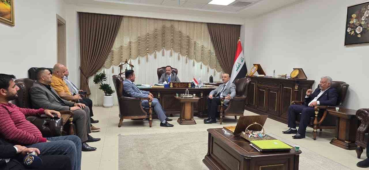 The Technical Deputy Governor of Kirkuk, Dr. Ibrahim Tamim, received the President of the Iraqi Journalists Syndicate, Director of Media and Government Communications, Marwan Ibrahim Al-Ani, along with members of the administrative board of the Kirkuk branch and a group of journalists in the governorate.