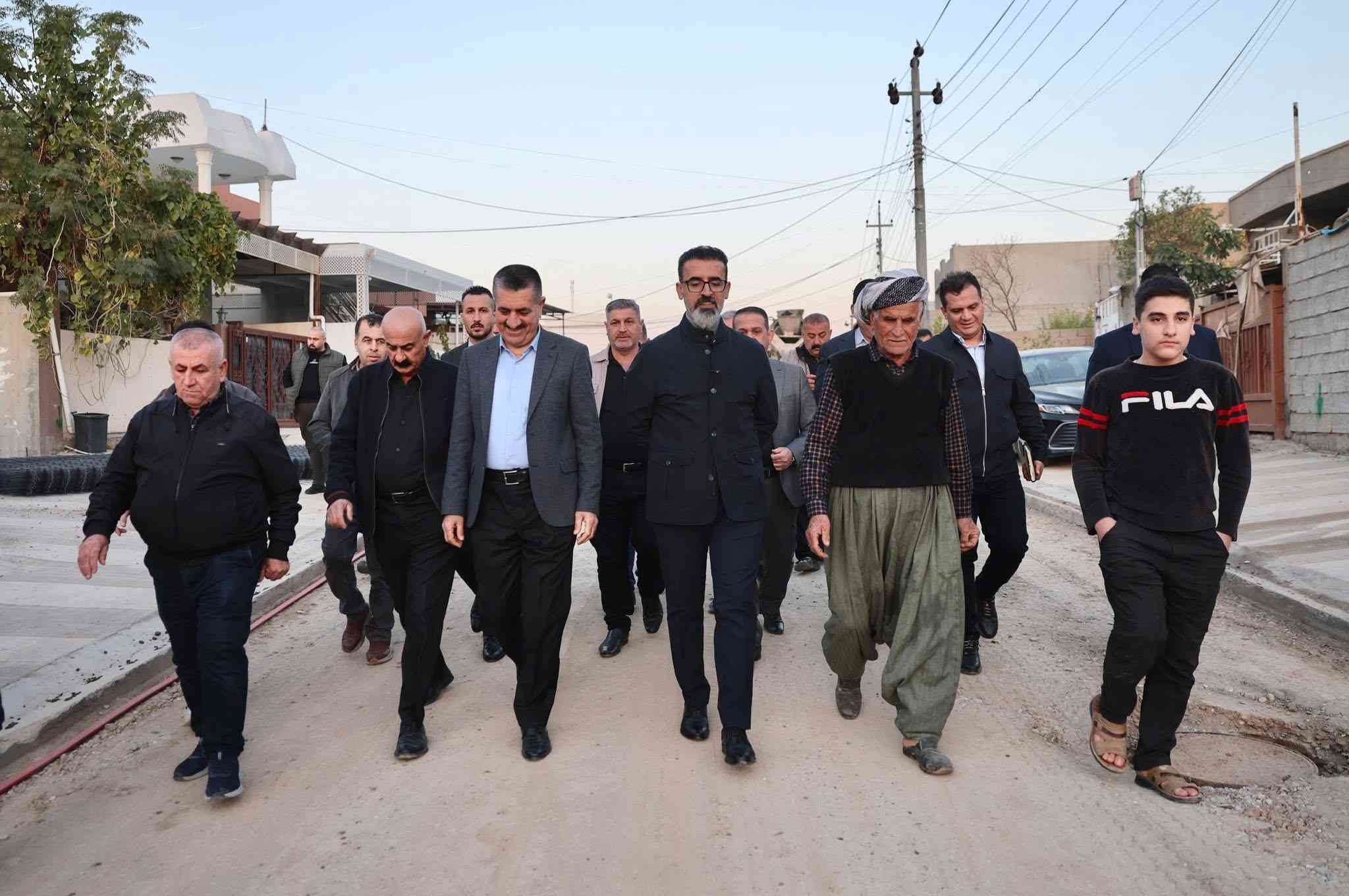 The Governor of Kirkuk, Rebwar Taha Mustafa, conducted an inspection visit to the concrete paving project for a number of streets and alleys in the Rahimawa area.