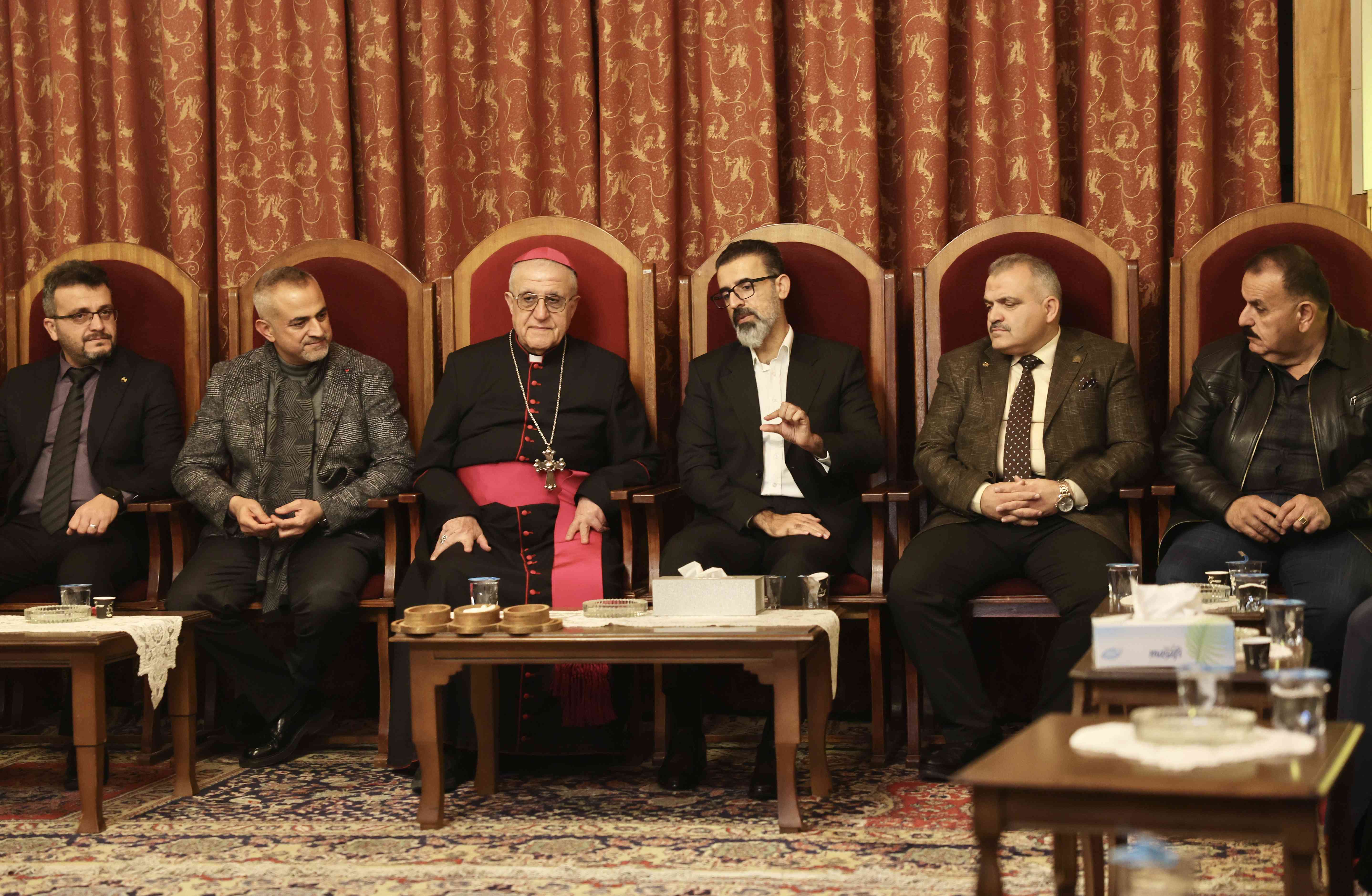 The Governor of Kirkuk, Mr. Rebwar Taha Mustafa, extended his congratulations to His Grace Archbishop Dr. Yousif Thomas Mirkis, Chaldean Archbishop of Kirkuk and Sulaymaniyah, on the occasion of Christmas and the New Year, in the presence of Member of Parliament Mr. Imad Youkhana.