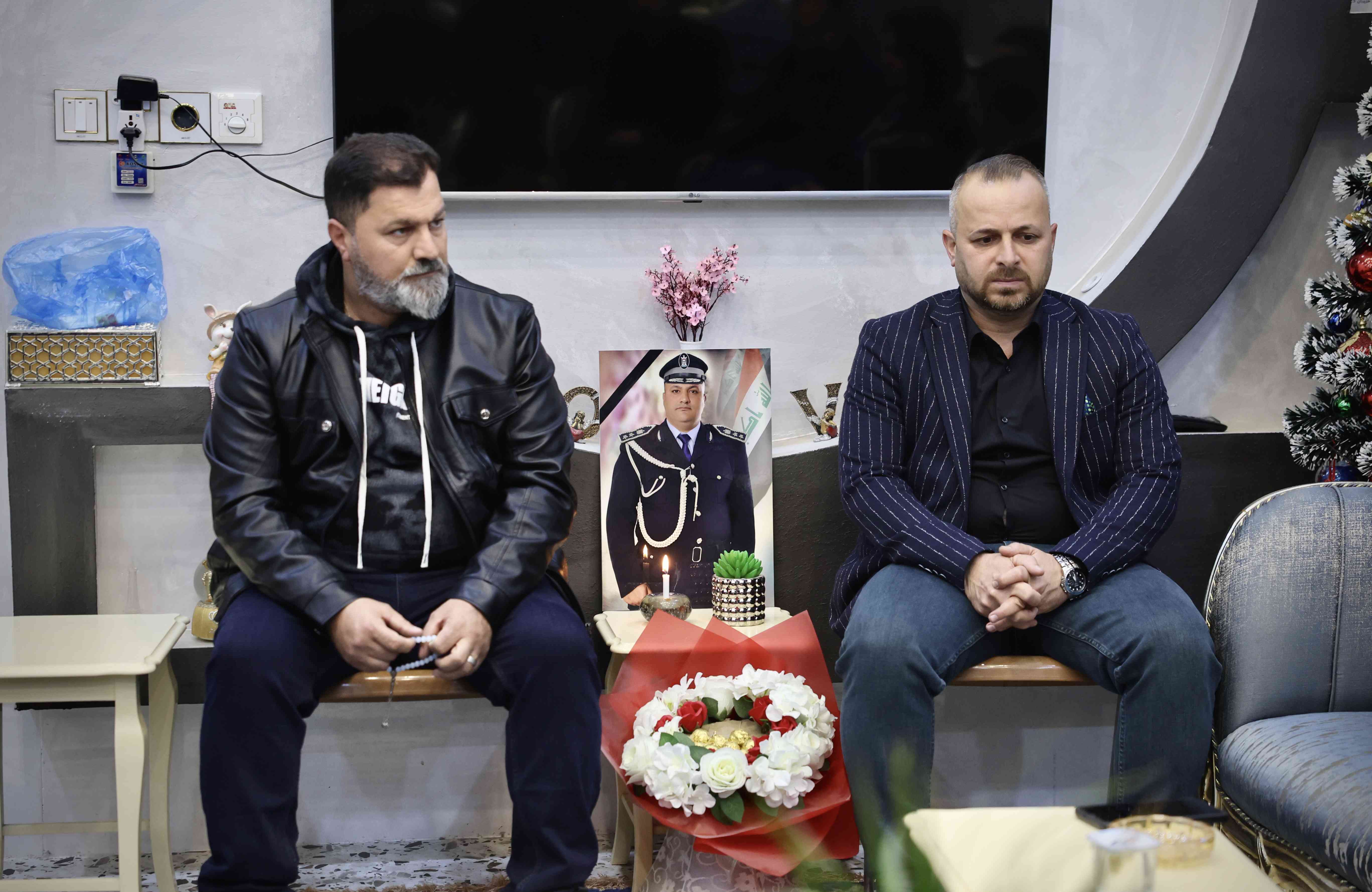 منزل الشهيد العقيد زيد عادل صبيح جرجيس وهو من المكون المسيحي الذي استشهد قبل ايام .