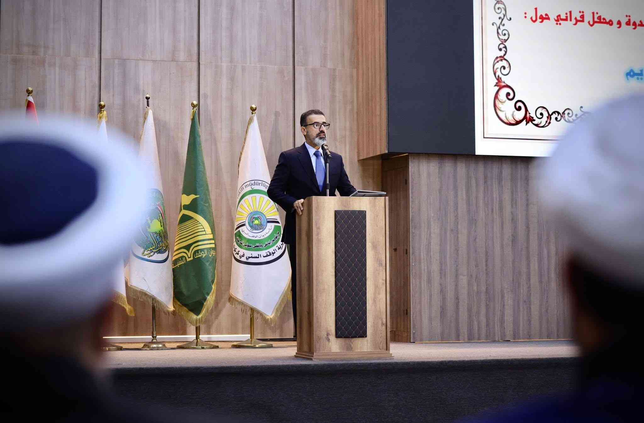 It was organized by the Sunni and Shiite Endowments and the Shrines of Kirkuk at the Governorate Building, with the attendance of the Director of the Sunni Endowment, Salem Majid, the Director of the Shiite Endowment, Fattah Mardan, and a large gathering of esteemed scholars and religious figures.