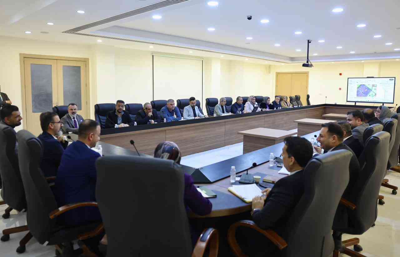 The meeting was attended by the Technical Deputy Governor, Dr. Ibrahim Tamim, the Assistant Governor for Technical Affairs, Engineer Qasim Ibrahim Hafez, the Assistant Governor for Services and Development Affairs, Engineer Jihan Ibrahim, the Governor’s Advisor for Investment and Strategic Planning, Engineer Ali Hammadi, the committee members, and the Director of the Properties Department at the Governorate Office.