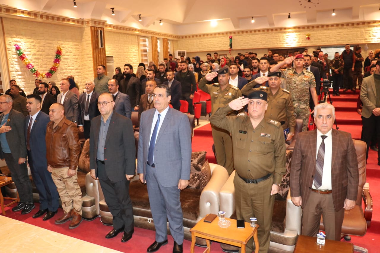 حضر السيد محافظ كركوك راكان سعيد الجبوري , الأحتفالية التي اقامتها رئاسة جامعة كركوك بمناسبة الذكرى الثانية لاعلان النصر الكبير في تحرير الأراضي العراقية من دنس ارهاب داعش . الأحتفالية التي حضرها رئيس جامعة كركوك الدكتور صباح احمد اسماعيل ومسؤول محور الشمال لمنظمة بدر محمد مهدي البياتي وقائد شرطة كركوك اللواء علي كمال ومساعدي رئيس الجامعة ومعاون محور الشمال للحشد الشعبي ابو ثائر البشيري, وعمداء الكليات وقيادات امنية ونخب جامعية وطلبتها . وفي كلمه لسيادته , ثمن مبادرة رئاسة جامعة كركوك في استذكار هذا اليوم وتحية الشهداء وعوائلهم الكريمة .. مؤكدا ان وحدة العراقيين خلف القوات الامنية ومساندة مكونات كركوك وتضحياتهم حققت النصر واليوم نجد مواطنينا اكثر دعما وتواصلا ومساندة للقوات الامنية .. مؤكدا اهمية مواطني كركوك والجامعة ورجال الدين والوجهاء والرموز في ترسيخ التعايش وبناء مستقبل أمن . وقال ان جامعة كركوك هي احدى معالم المحافظة العريقه ومنبع انتاج ثقافة التعايش والتواصل والابداع .. مثمنا مواقفها في احتضان خمس جامعات ايام النزوح .. موضحا ان ادارة كركوك ستكمل خلال الأسبوع احالة جميع مشاريعها التي بدأ قسما منها والاخر سينطلق مع الاول من العام القادم في مشاريع خدمية واعدة في مجال الطرق والجسور والصحة والتربية .. قائلا ان مطار كركوك اكتمل من الناحية الفنية ونحن الان بصدد استحصال موافقات الرسمية للتشغيل . واشار ان مشاريعنا ستصل لجميع الاحياء التي وزعت وفق الكثافة السكانية وحسب راي قطاعات البلدية وحاجتهم وستشمل جميع الاحياء .