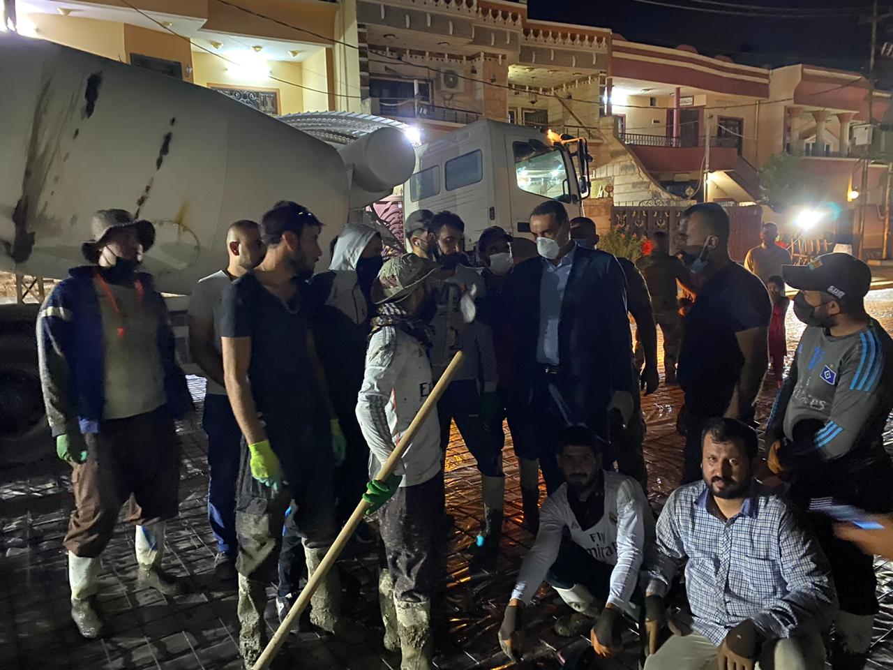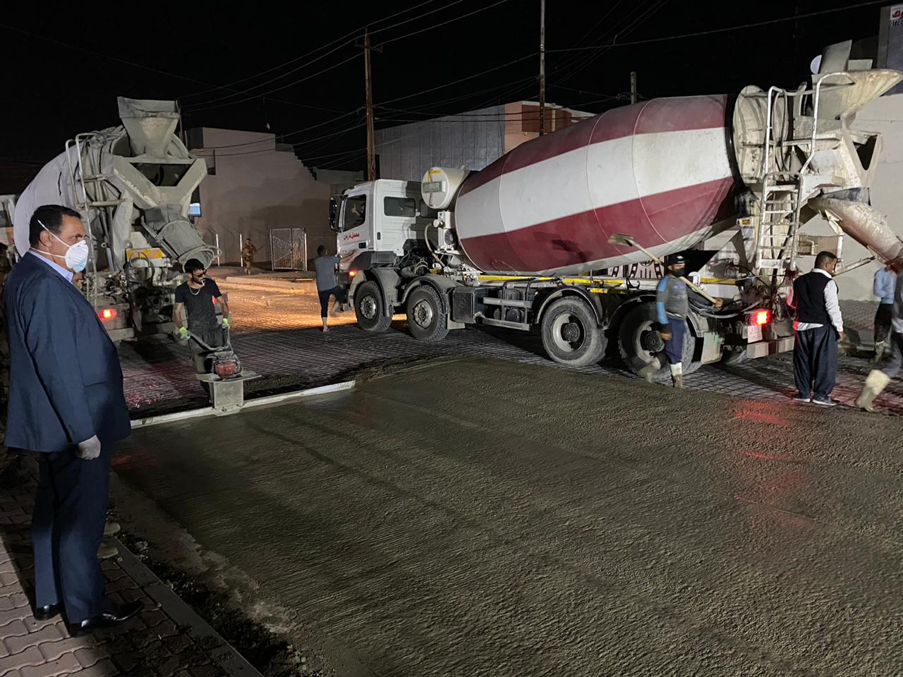 بعد منتصف الليل السيد محافظ كركوكً يشرف ميدانيا على اعمال الصب والتأهيل في حي عدن ضمن القاطع البلدي السادس
