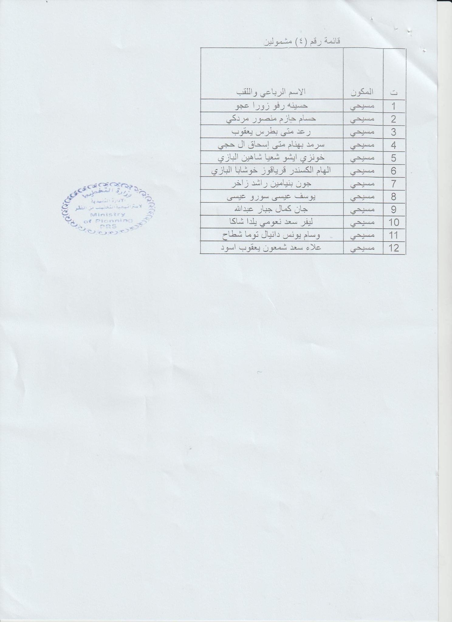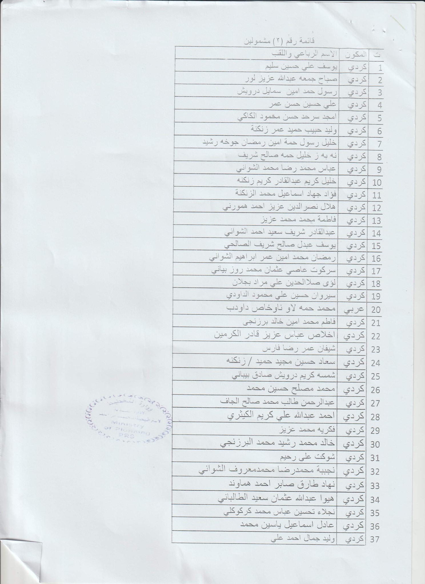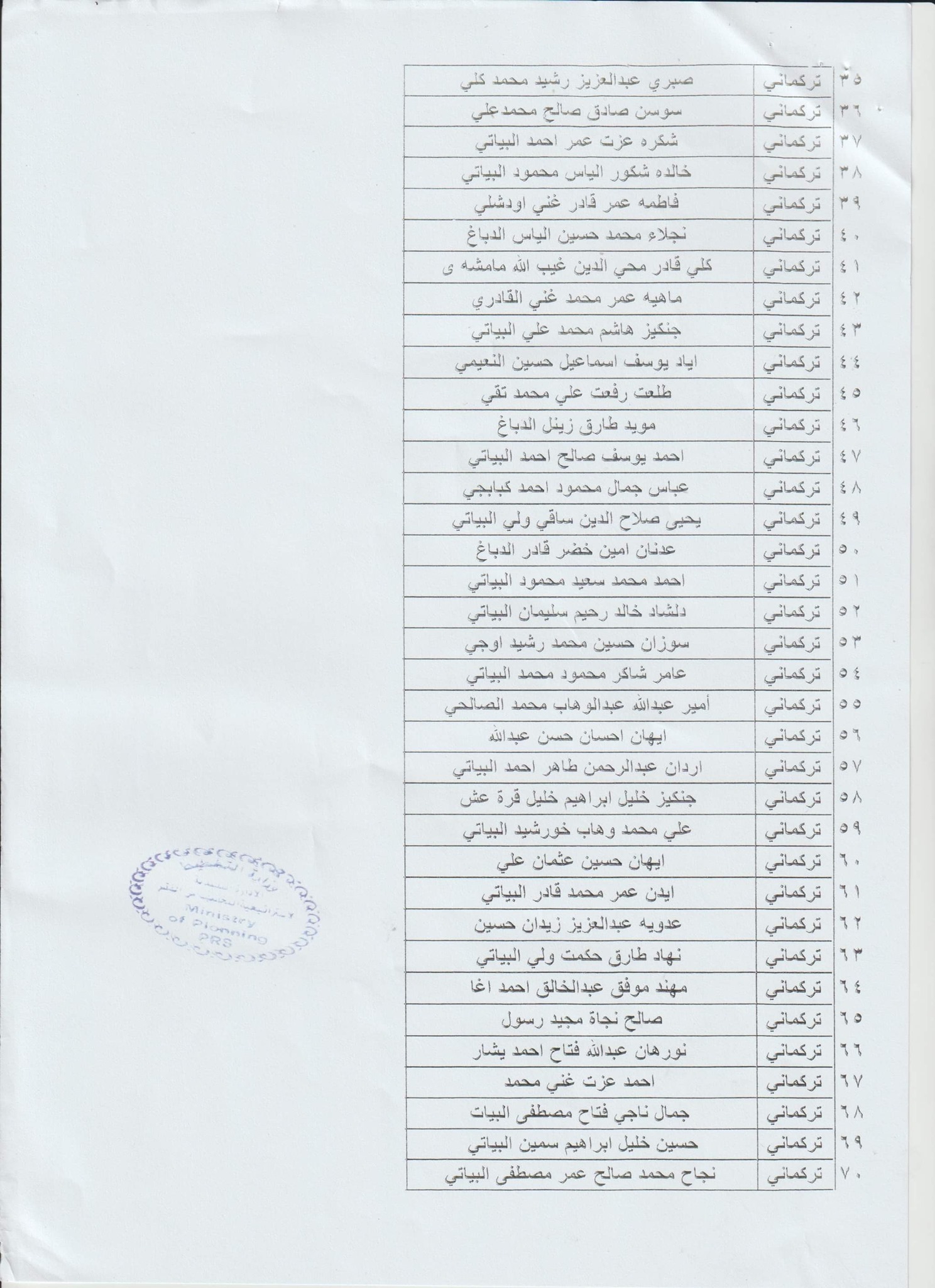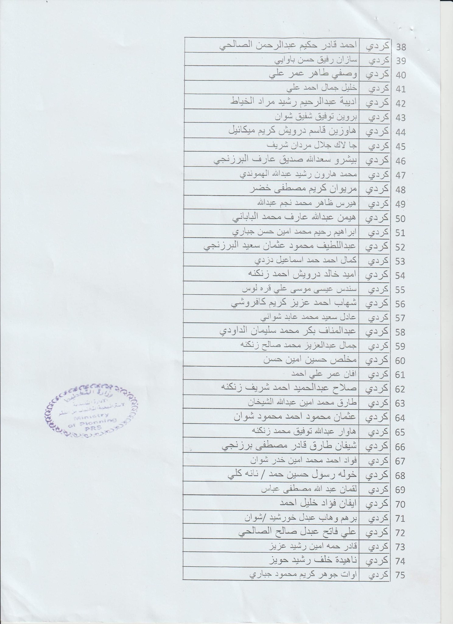 ادناه قائمة بأسماء المواطنين المتقدمين عبر الاستمارة الألكترونية للحصول على شقق واطئة الكلفة في جنوب دوميز وشوراو ، وسيتم اجراء القرعة غدا الثلاثاء المصادف ٢٠٢١/٣/١٦ في الساعة ١ ظهراً في قاعة مجلس المحافظة والتي تم اعتماد التوزيع وفق ٣٢٪؜ المتبعة من قبل إدارة كركوك وحرصها على حقوق مواطنيها وفق الضوابط وعلى المتقدمين استصحاب المستمسكات الرسمية التي تؤيد شمولهم بالتخصيص . مع التقدير .. قسم الاعلام والاتصال الحكومي في كركوك .