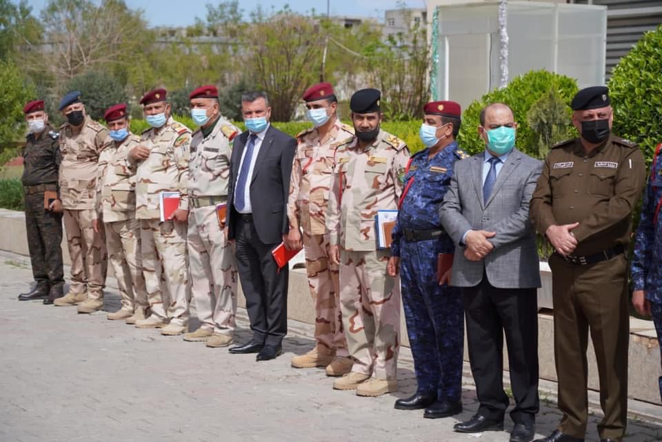 بحضور نائب قائد العمليات المشتركة ومحافظ كركوك عملية تسلم القائد الجديد للمقر المتقدم للعمليات المشتركة يتولى مهامه الجديدة . الجبوري ما شهدناه يجسد روح الوطن وارض كركوك لن تنسى ابطالها الذين ضحوا بارواحهم . جرت في قيادة المقر المتقدم للعمليات المشتركة في كركوك وبحضور السيد محافظ كركوك راكان سعيد الجبوري رئيس اللجنة الامنية العليا ونائب قائد العمليات المشتركة الفريق ركن عبد الامير الشمري والمفتش العام لوزارة الدفاع الفريق ركن عماد الزهيري وقائد قوات الشرطة الاتحادية اللواء صالح العامري ،عملية تسلم الفريق ركن علي جاسم الفريجي مهامه الجديدة قائدا للمقر المتقدم . وقال الفريق الشمري ،حضرنا اليوم تسليم بعد اكمال الفترة الزمنية ووفق سياق متبع بالقوات المسلحة ..مخاطبا الفريق سعد حربيه ،انكم تغادرون المنصب اقدم لكم الشكر والثناء لدوركم المهني وتصديكم للعناصر الارهابية وتعاونكم مع الادارة وتعزيز التعايش والسلام ..مؤكدا ان الفريق علي الفريجي جدير بالقيادة ويمتلك الشجاعة والحزم والتنسيق وسنكون داعمين لكم مع ادارة كركوك . وقال السيد محافظ كركوك اننا وباسم ادارة كركوك وشعبها نثمن جهدكم ودوركم وحضوركم وبمهام وطنية فكركوك مهمة والادارة والقيادة الأمنية موحدة ..مخاطبا الفريق سعد حربيه لقد كنت مثالا للقائد الذي حفظ كركوك من المفاجاءت لان المحافظة تحتاج لمناخ وتعايش وخطاب هادف وهادىء بعيدا عن الازمات والتاويل ..موضحا ان الفريق حربيه تمتع باخلاق وطيب مع الناس وترك بصمة في نفوس جميع اهالي كركوك . وقال سنعمل وبدعم وتنسيق مع الفريق الركن الفريجي لتحقيق الامن والاعمار ومحاربة الارهاب وترسيخ التعايش ..قائلا شرف لنا خدمة ودعم قواتنا البطلة فأرض كركوك لن تنسى ابطالها الذين ضحوا وماجرى اليوم هو تسليم بروح الوطن وحب العراق لتبقى كركوك امنية وقوية وموحدة . واشاد الفريق حربيه بدعم القائد العام للقوات المسلحة ورئيس اركان الجيش ونائب قائد العمليات المشتركة ومحافظ كركوك الذي قدم دعم واسناد واسهم بفتح طرق وتامين كاميرات وتشييد ابنية جديدة وتاهيلها ..قائلا ان شعب كركوك محب للقانون والتعايش والتحضر . وفي حديث للفريق الشمري ،ان وضع كركوك مستقر والامن بمستويات جيده وهنالك سياق متبع الاعتماد على المعلومات الاستخبارية في تنفيذ ضربات جوية حققت نتائج كبيره وتدمير مضافات ارهابية بما يعزز الامن الداخلي في كركوك والمحافظة مقبلة على انتخابات . واكد محافظ كركوك اننا في ادارة كركوك ندعم ونساند ونقف مع قواتنا الامنية التي هي عنوان الشرف والفخر ولولا تضحياتها ودماء ابطالها لما تحقق الامن في كركوك ..مؤكدا ان الوضع الامني يشهد استقرارا وبتصاعد ايجابي رغم وجود تحديات موقعية وهنالك معلومات لحركة وتواجد الارهابيين . وقال ما شهدناه اليوم هو صورة مهنية للعسكرية العراقية ومكانتها .