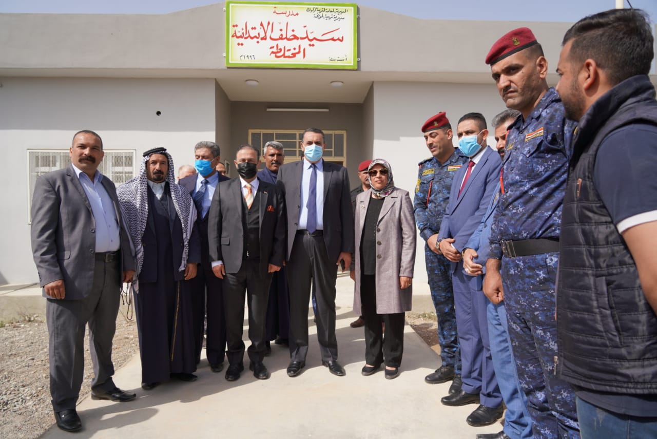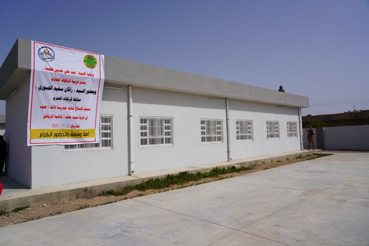 في احدى القرى النائية الجبوري يفتتح مدرسة وينهى مرحلة المدارس القديمة والطينية في الريف ،،ويدعو لمساندة القوات الامنية ،ويؤكد سنؤمن كافة الخدمات . افتتاح مدرسة قرية السيد خلف . افتتح السيد محافظ كركوك راكان سعيد الجبوري ،مدرسة في قرية سيد خلف التابعة لناحية الرياض . واطلع السيد المحافظ خلال الافتتاح الذي حضره مدير عام صحة كركوك ومعاونه ومدير الشباب والرياضة ومديرة الابنية المدرسية على المدرسة ذات ست صفوف والتي شيدت ضمن خطة تنمية الاقاليم بحضور اهالي القرية وجمع من الطلبة الاطفال . واكد السيد محافظ كركوك راكان سعيد الجبوري اننا اليوم جئنا لافتتاح المدرسة في هذه القرية النائية وانهاء المدارس القديمة والمتهالكة والطينية وسنعمل على ايصال طريق لهم ومشروع ماء ..داعيا اهالي القرية بالقول اننا سنؤمن كافة متطلبات العيش الكريم والخدمات لكم ولجميع مواطني كركوك وعليكم مساندة القوات الامنية البطلة الذين هم بينكم وجاؤا لمقارعة الارهاب وحفظ الامن ودعم جهود الاعمار واعادة الاستقرار .