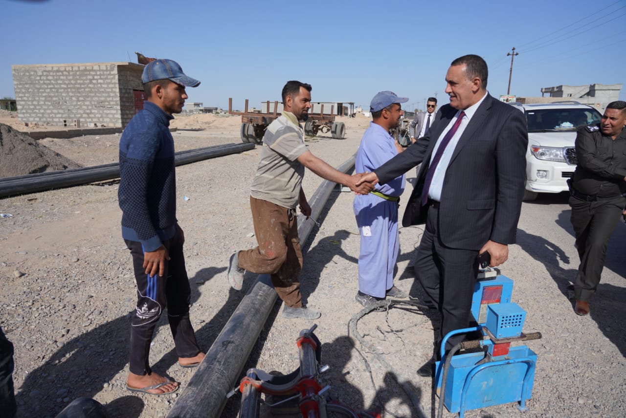 الجبوري  يتابع ميدانيا اعمال تنفيذ الخط الناقل لمشروع ماء شميط .