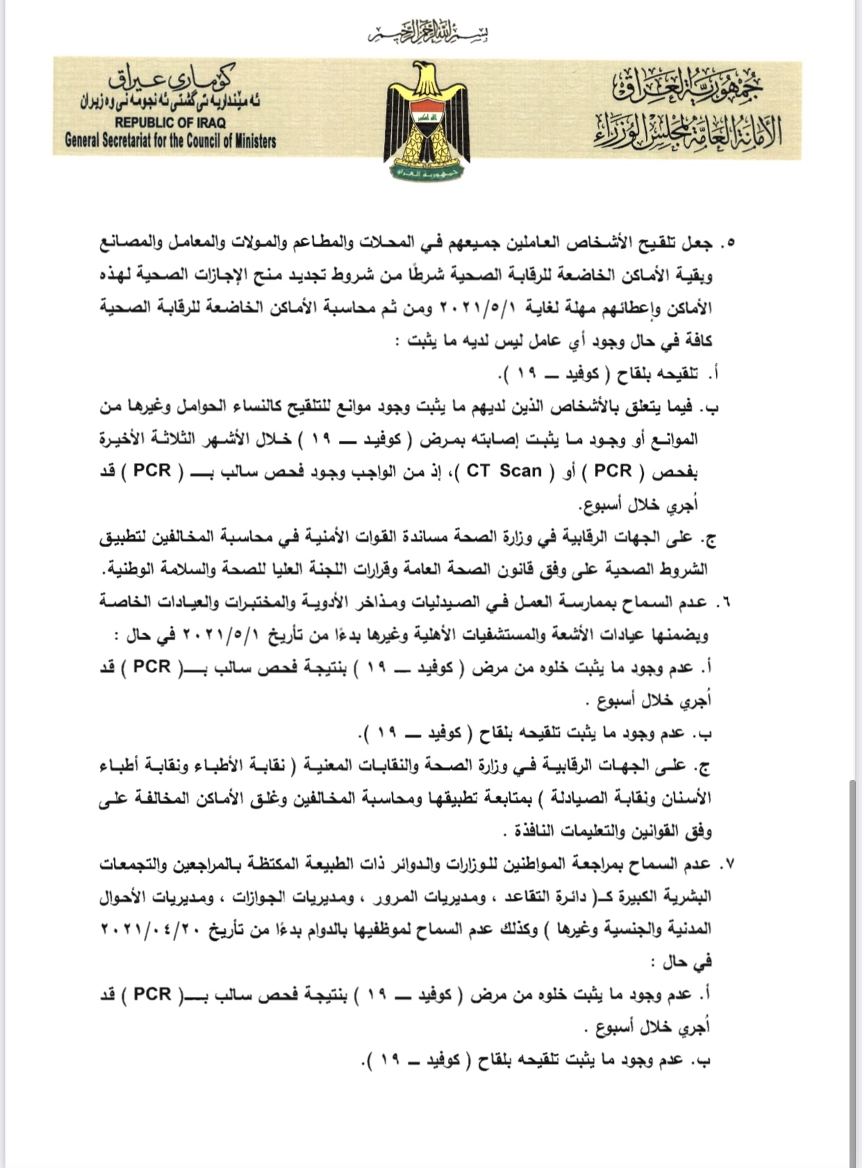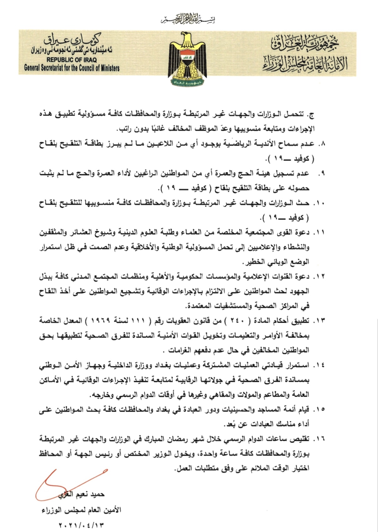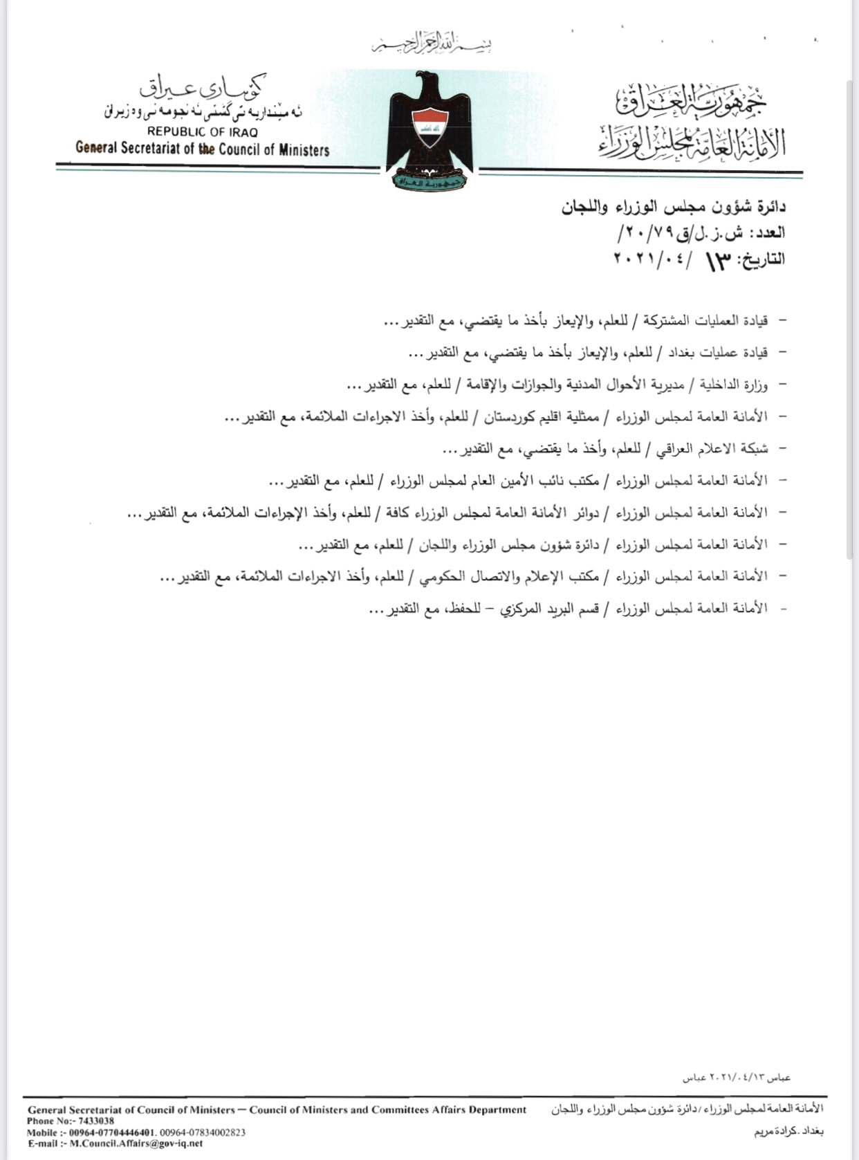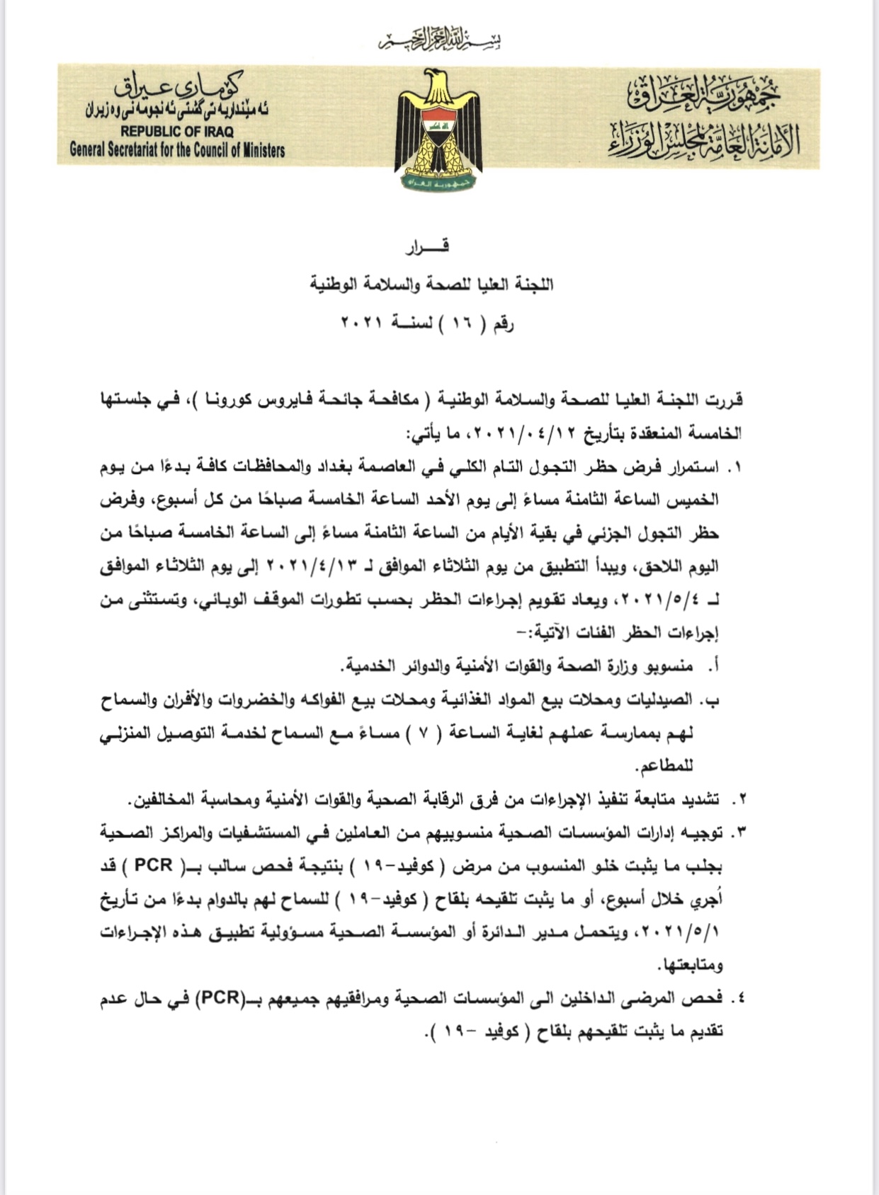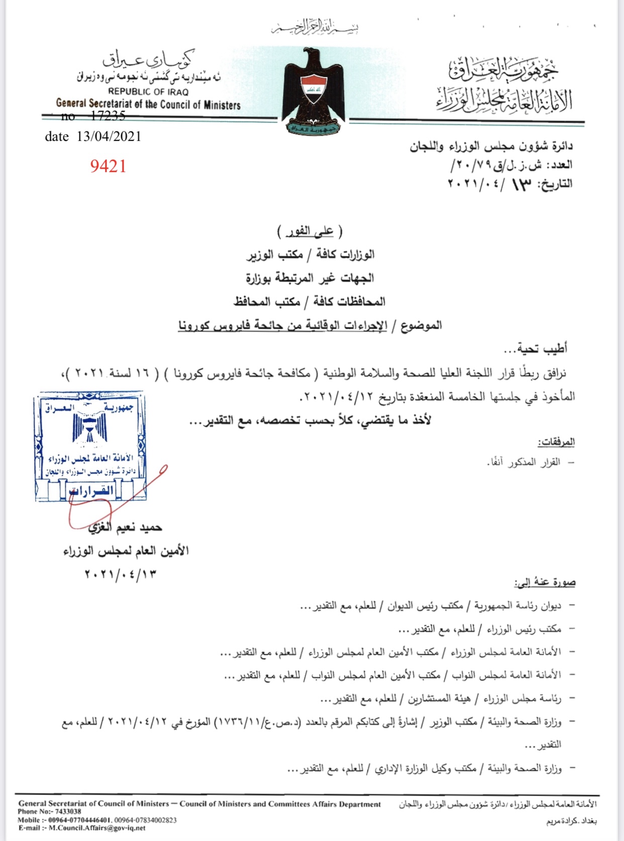 الجبوري يوجه الدوائر كافة بالألتزام بقرارات اللجنة العليا للصحة والسلامة الوطنية .