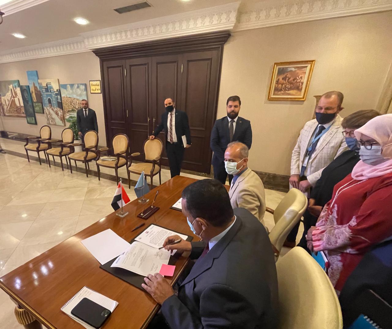 لأول مرة ادارة كركوك توقع مذكرة تفاهم مع برنامج الامم المتحدة للمستوطنات البشرية (UN - HABITAT). وقع السيد محافظ كركوك راكان سعيد الجبوري ،مذكرة تفاهم مع برنامج الامم المتحدة للمستوطنات البشرية (UN - HABITAT) في دار ضيافة الحكومة العراقية بالعاصمة بغداد ،بما يسهم في دعم جهود بناء الدور المدمرة وتعزيز التعاون بين ادارة كركوك والامم المتحدة بدعم من الحكومة العراقية . وبحث السيد محافظ كركوك مع السيدة ميمونه شريف مساعد الامين العام للامم المتحدة والمدير التنفيذي لبرنامج الامم المتحدة للمستوطنات البشرية ،اهمية العمل على دعم جهود الاستقرار واعادة اعمار المناطق المحررة وعودة النازحين وبناء الدور المدمرة والمهدمة في كركوك . وقال سيادته : ان كركوك مهمة في العراق وهي محافظة تظم الكرد والتركمان والعرب والكلدوا اشوريين وهي تضم اكثر من نصف مساحتها التي احتلها ارهاب داعش وكانت اخر المدن المحررة وفيها 138 قرية وناحية مهدمة بشكل كامل ونحن نعمل على تامين خدمات الماء والكهرباء لها وليس لنا صلاحية وامكانية في بناء الدور ..مؤكدا ان ادارة كركوك تحرص على اعادة النازحين لكن الذين عانوا الارهاب والنزوح حينما يعودوا لقراهم المهدمة ويسكنون الخيم يضطرون النزوح مجددا . وقال : ان مجمل ما خصص للمحافظة من خطط الاستقرار لا يتجاوز 68 مليار دينار الى جانب نسبة كركوك في صندوق اعادة الاعمار التي تصل لاكثر من 6%وهي لا تفي وحجم الدمار ..قائلا ان محافظة متنوعة وعانت الارهاب بحاجة لدعم المجتمع الدولي والمنظمات الأممية لجهود الاستقرار لاهميته في تحقيق الاستقرار الامني والمجتمعي ، فكركوك بحاجة لدعم بما يعزز الامن والاستقرار والسلام واستدامة الامن لان الصراع والخلاف يؤدي الدمار ..قائلا ان مساعدتكم لكركوك ستصنع تعايش مستدام . ودعا الى ارسال لجنة تطلع على واقع القرى المدمرة والبنى التحتية لتقديمها من قبلكم للدول المانحة . واكدت السيدة ميمونه شريف ،انني اعجبت برؤية ادارة كركوك وحرصها على دعم جهود اعادة الاستقرار. واكدت اهمية مساهمة الدول المانحة والمنظمات الدولية في دعم كركوك . وكان البرنامج قد اعد خطة لبناء 2500 دار تشمل مرحلتها الاولى 180دار سكنية في ثماني قرى مهدمة . واكدت ارينا سو لو رانو نائب ممثلة بعثة الامم المتحدة في العراق للشؤون الانسانية ،اهمية زيارة ومذكرة التفاهم واللقاء مع برنامج الامم المتحدة للمستوطنات والذي يعمل كثاني دولة هي العراق في العالم ،وحضورهم اليوم مع محافظ كركوك هو دليل الاهتمام ودعم العراق . واكدت ان المجتمع الدولي والدول المانحة اصبحوا يهتمون بكركوك لدعم الاستقرار والمذكرة اليوم ستحث وتدعم المانحين . واكدت ان الجهود الانسانية عبر المنظمات الدولية مستمرة ولدينا 100مشروع حاليا بالمناطق المحررة في كركوك وقضاء الحويجة . وحضر توقيع المذكرة والاجتماع السيد وائل الأشهب مدير برنامج العراق وعدد من كوادر الامم المتحدة .
