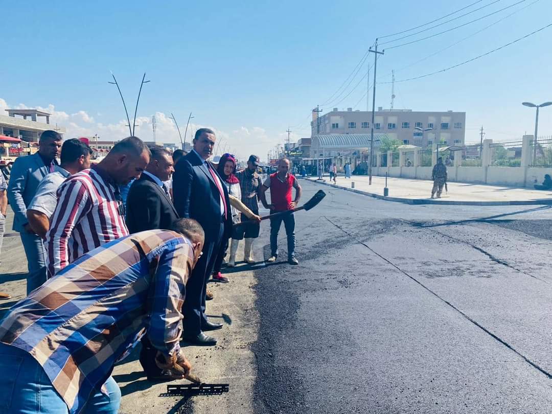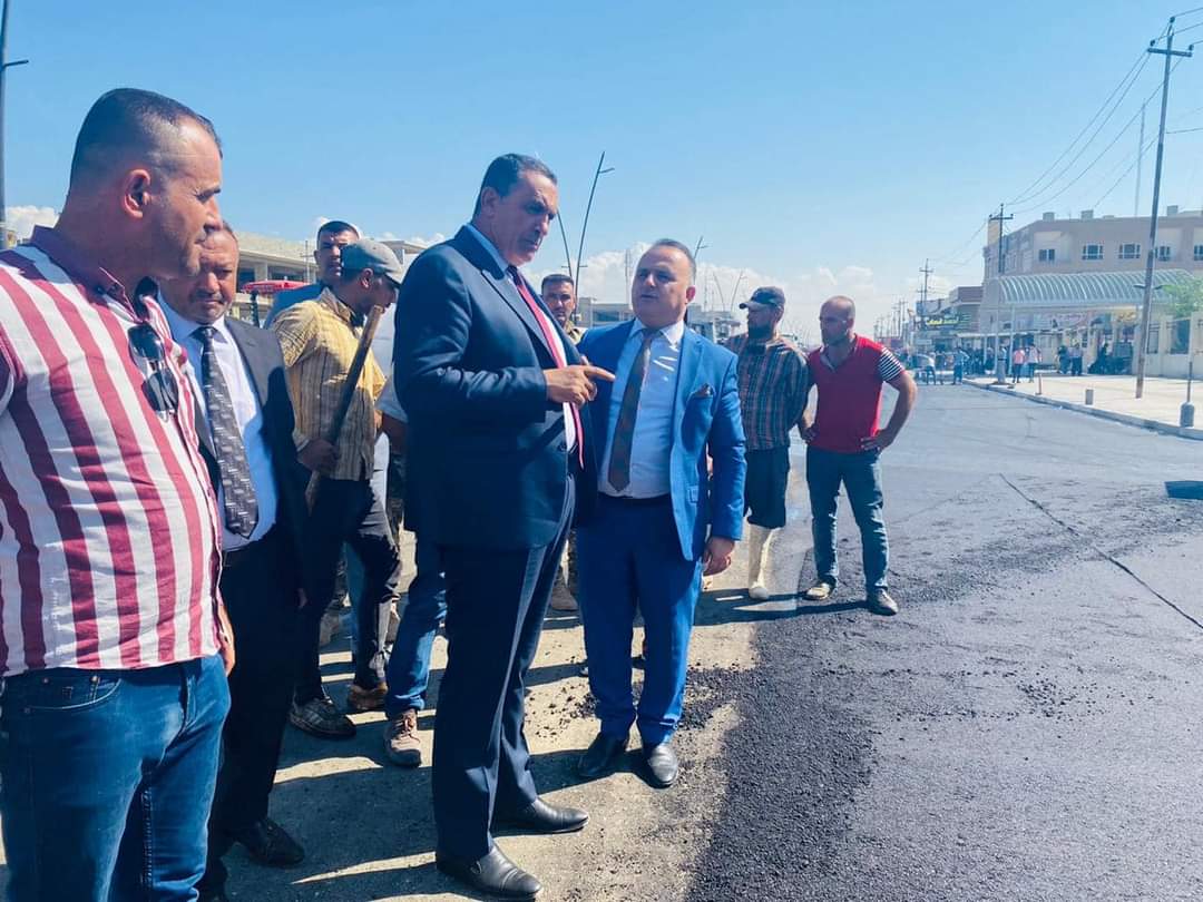 الجبوري يتابع ميدانيا اعمال التبليط للشارع الرئيس بين جامع النور الكبير وصولاً للجسر الرابع .