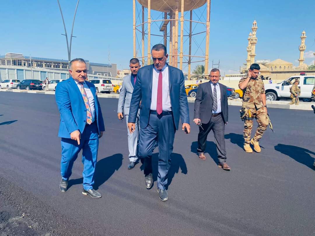 الجبوري  يتابع ميدانيا اعمال التبليط للشارع الرئيس بين جامع النور الكبير وصولاً للجسر الرابع .