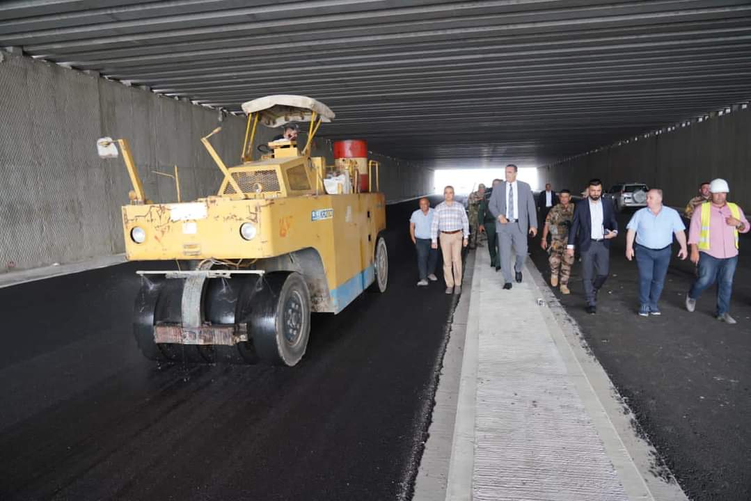 الجبوري يتابع اعمال اكساء الاسفلت لمشروع تقاطع نفق الجامعة .